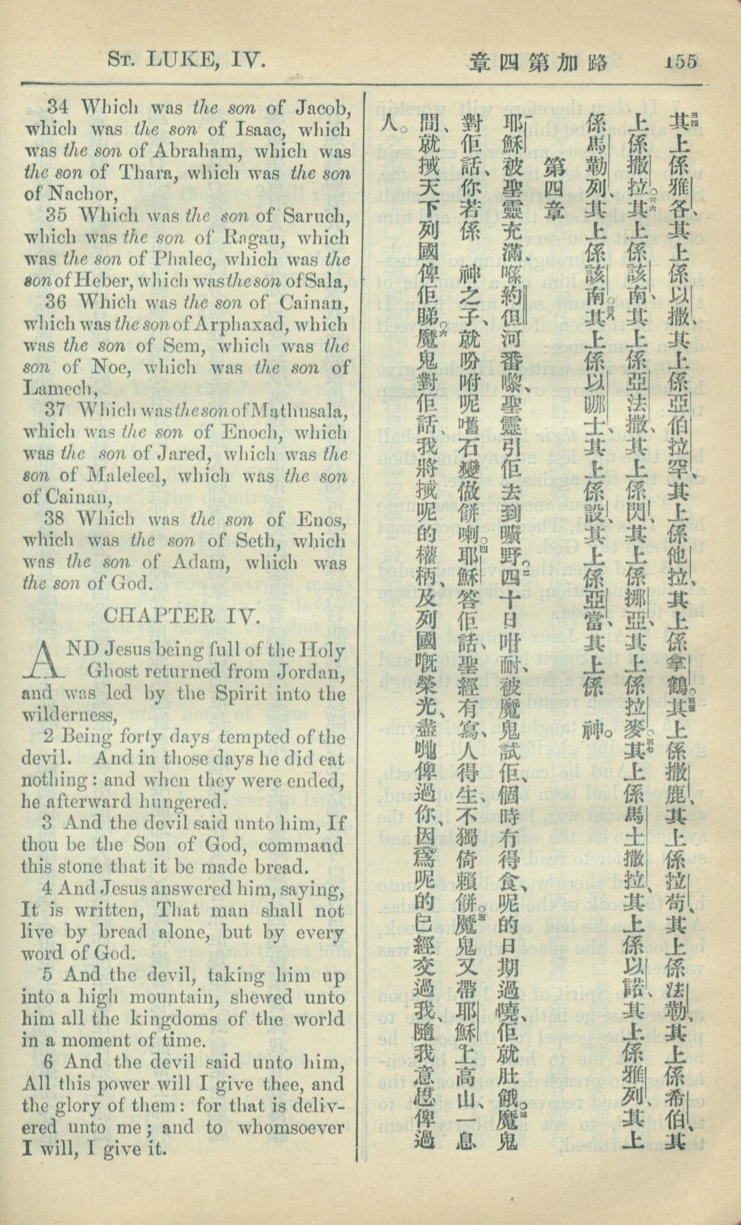 1909年中西字新約全書 路加福音 3 章 34 節到 4 章 6 節