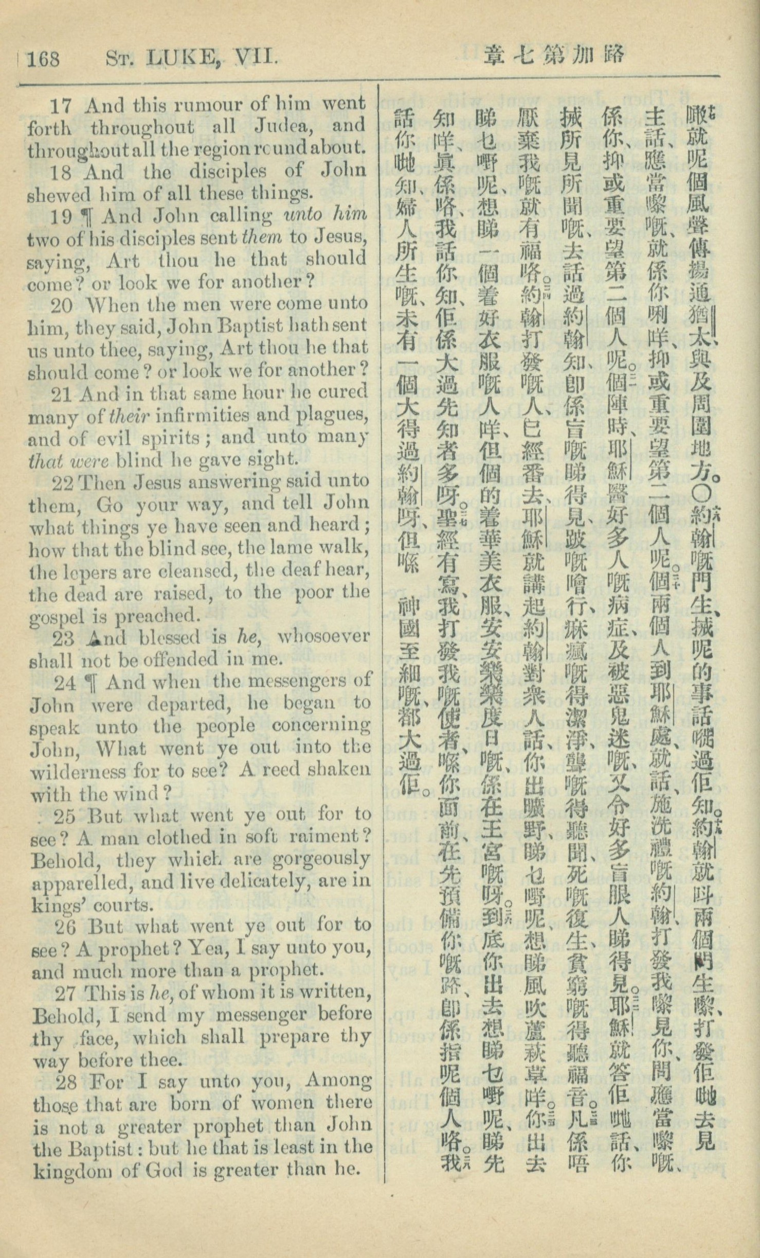 1909年中西字新約全書 路加福音 7 章 17 節到 7 章 28 節