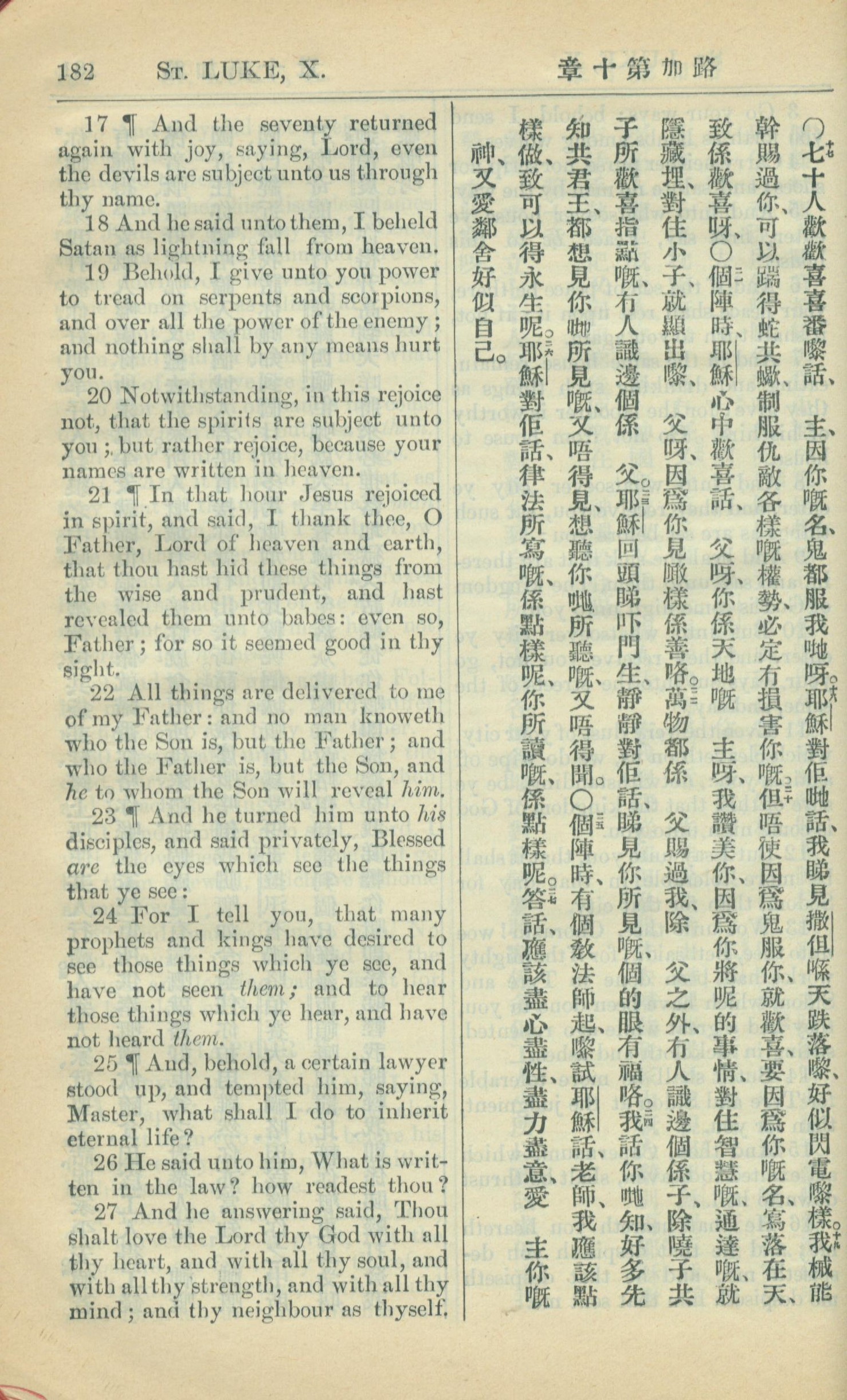 1909年中西字新約全書 路加福音 10 章 17 節到 10 章 27 節