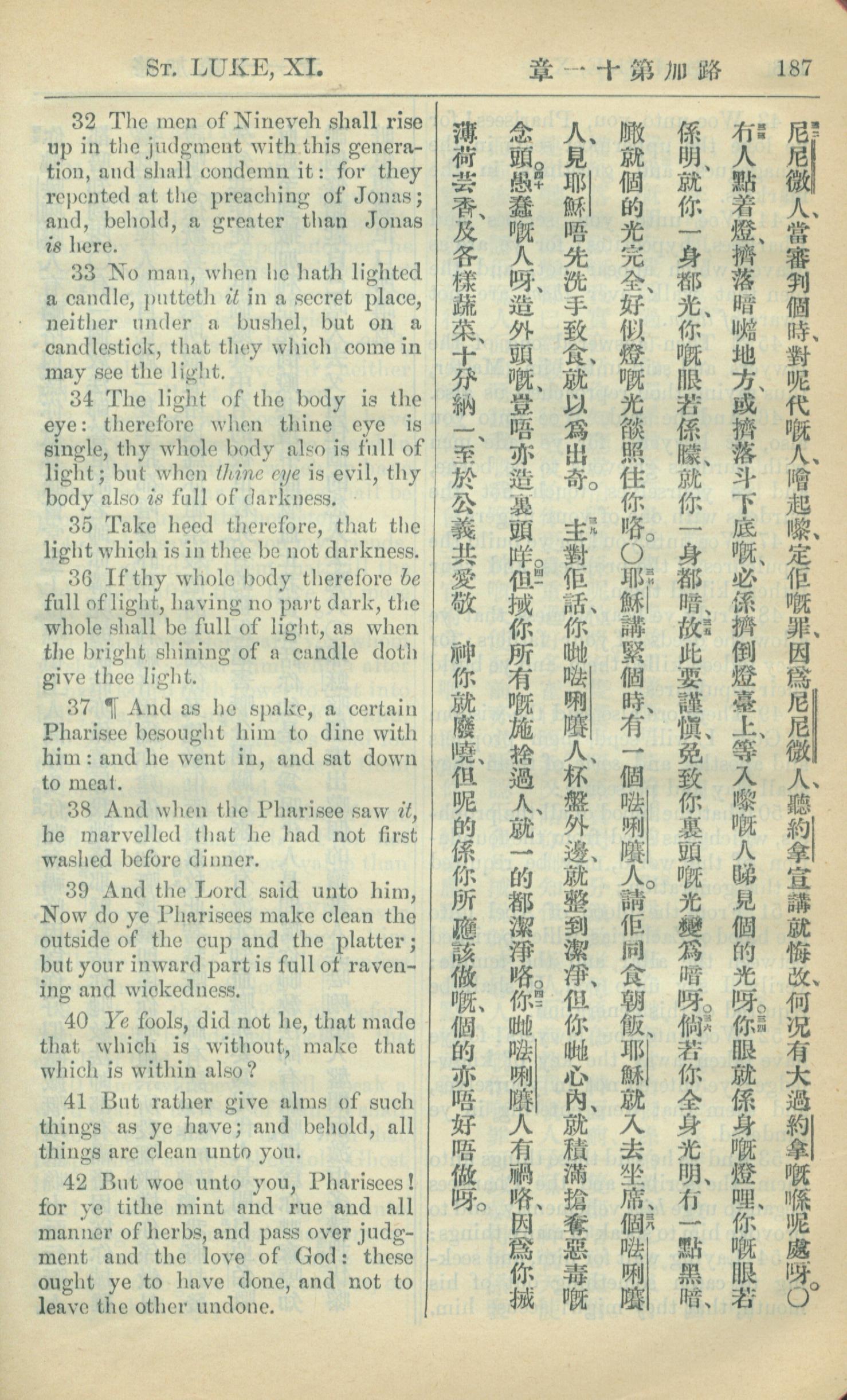 1909年中西字新約全書 路加福音 11 章 32 節到 11 章 42 節