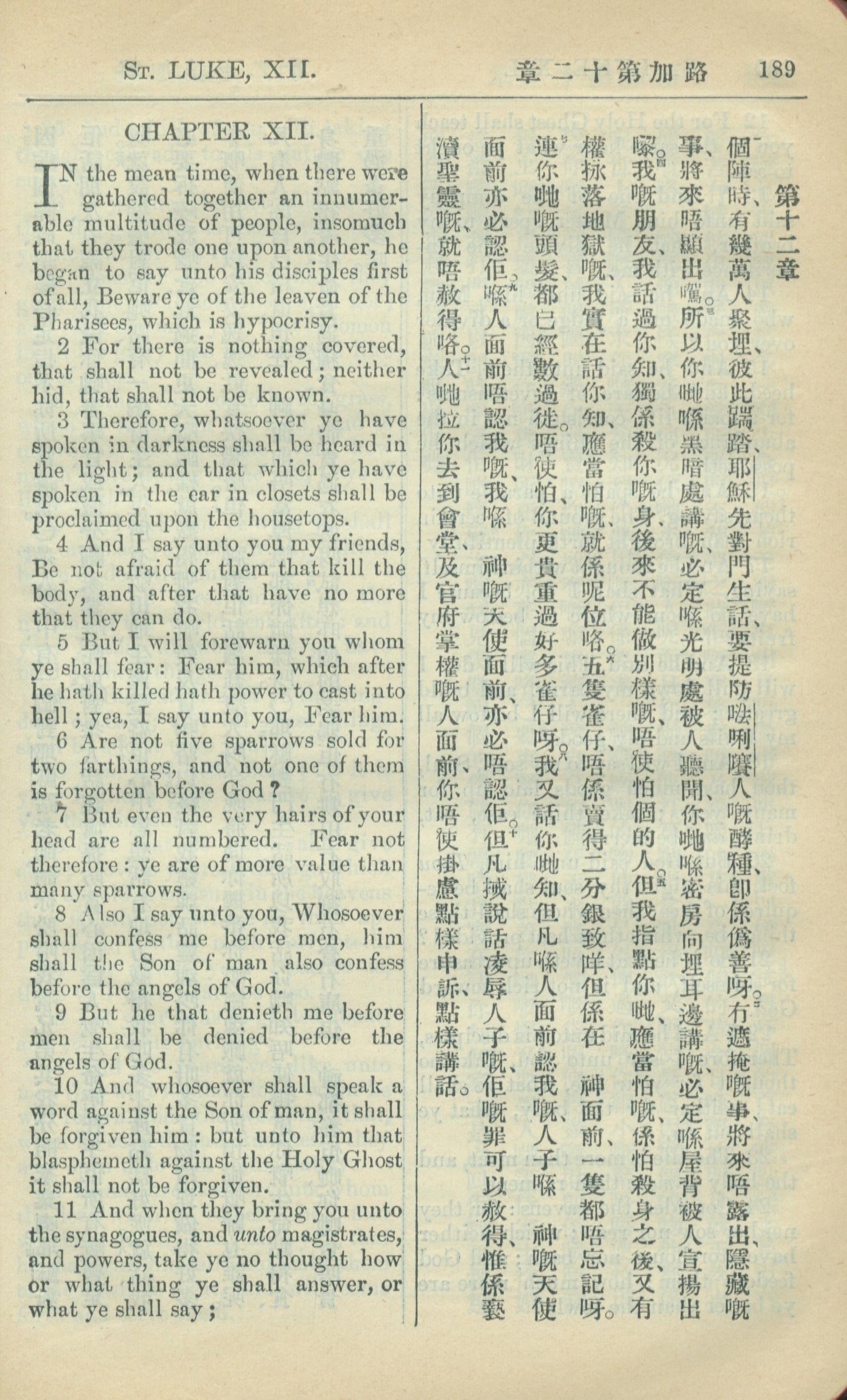 1909年中西字新約全書 路加福音 12 章 1 節到 12 章 11 節