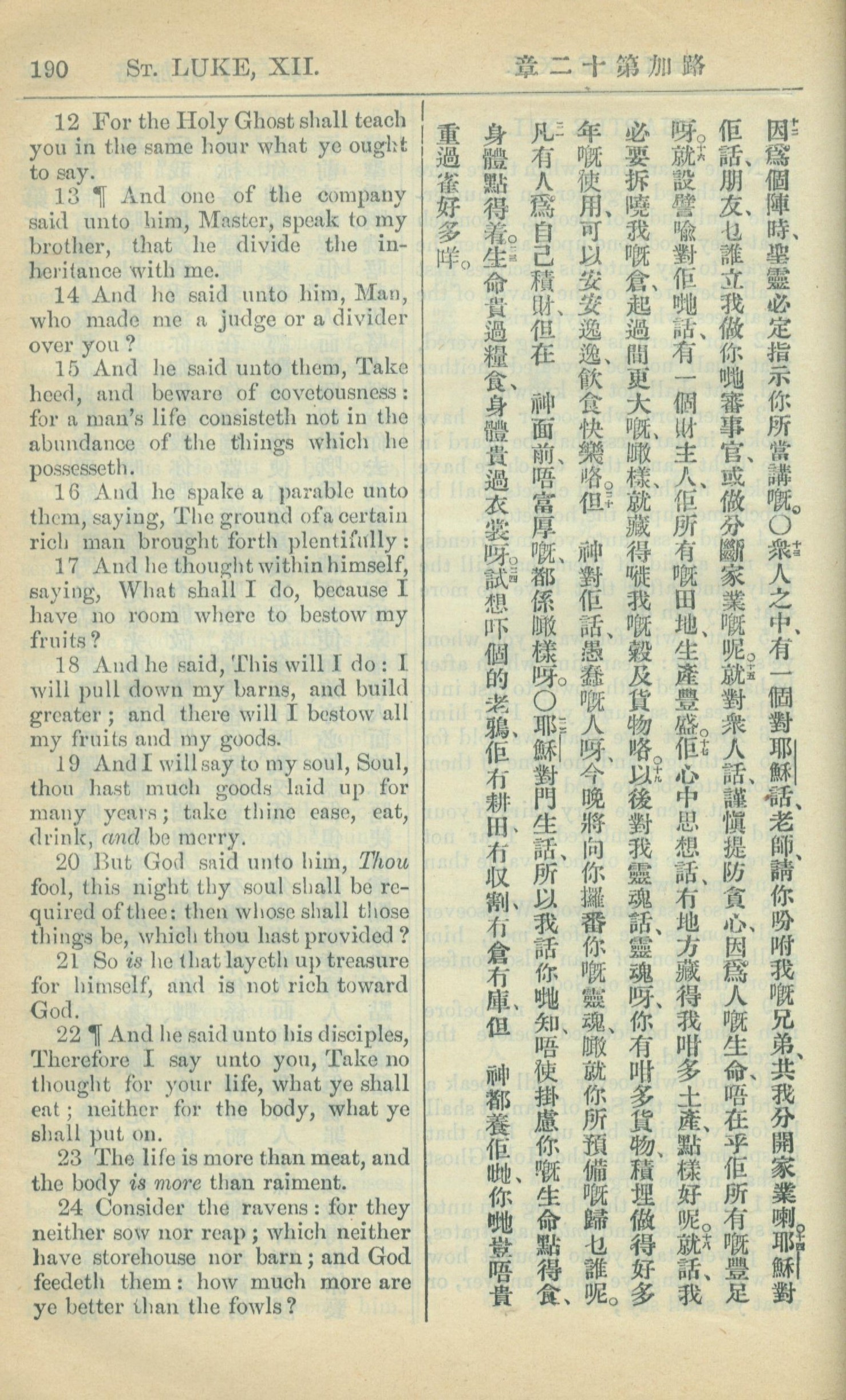 1909年中西字新約全書 路加福音 12 章 12 節到 12 章 24 節