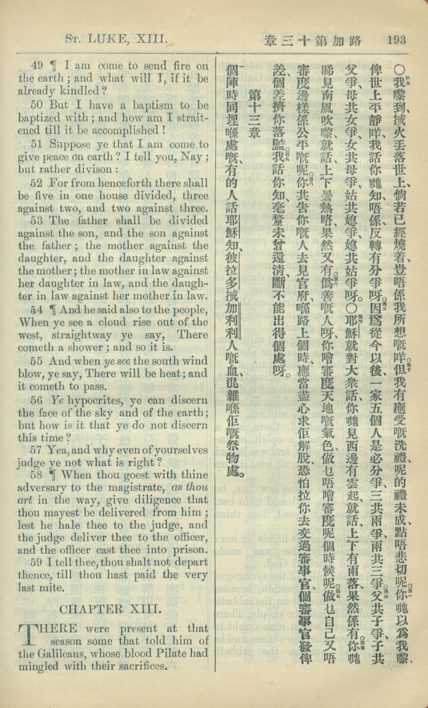 1909年中西字新約全書 路加福音 12 章 49 節到 13 章 1 節