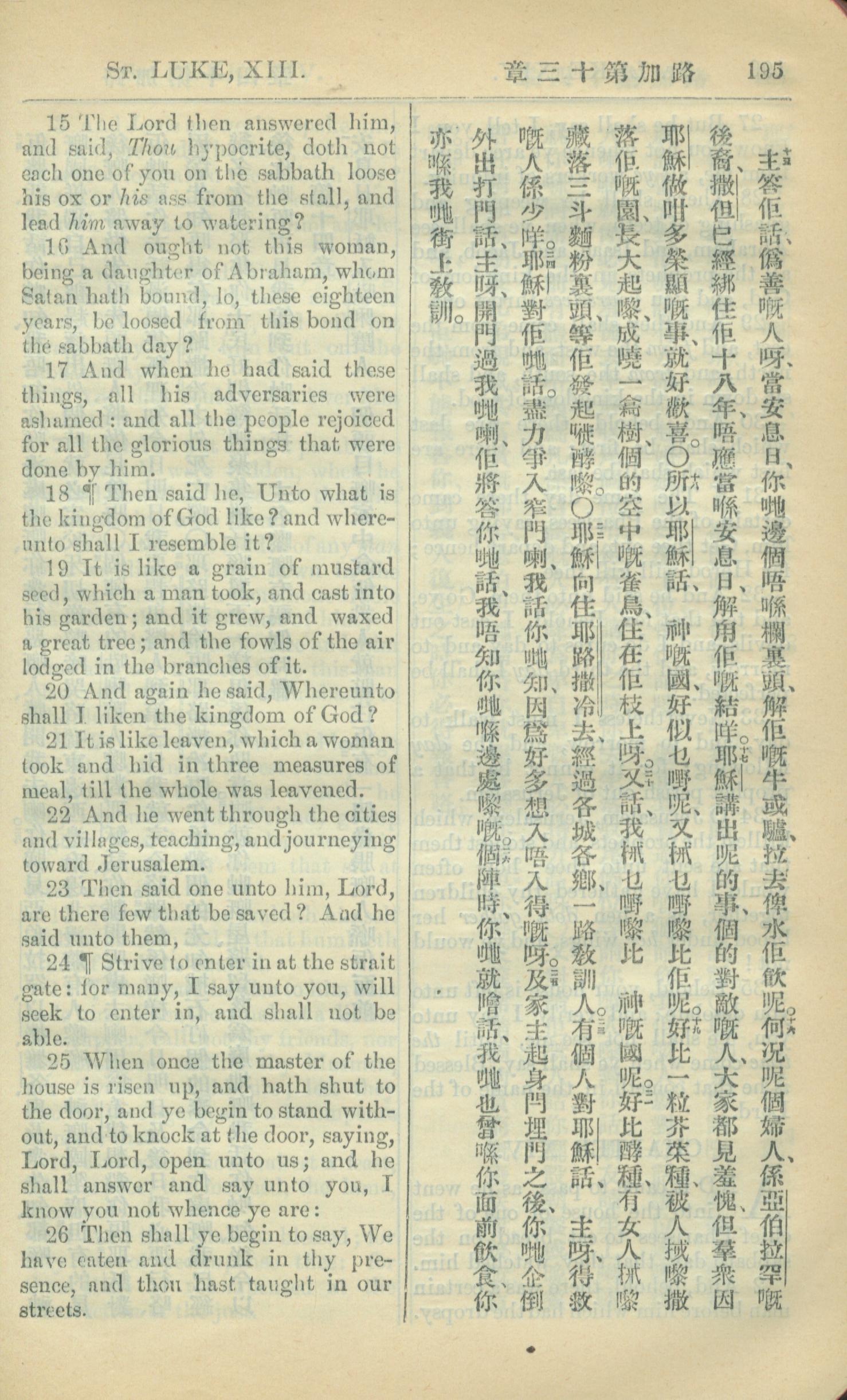 1909年中西字新約全書 路加福音 13 章 15 節到 13 章 26 節