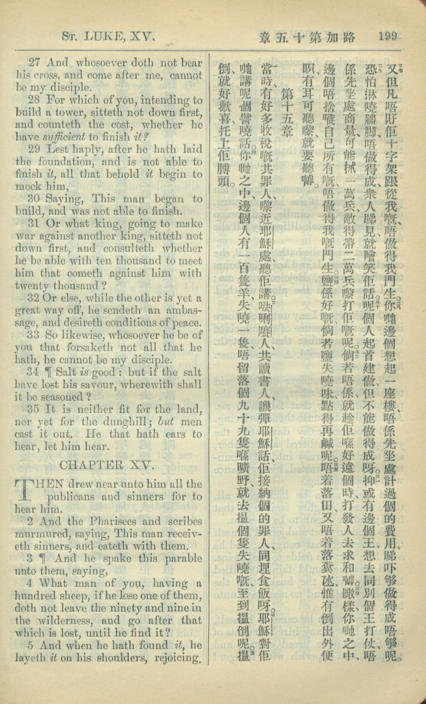 1909年中西字新約全書 路加福音 14 章 27 節到 15 章 5 節
