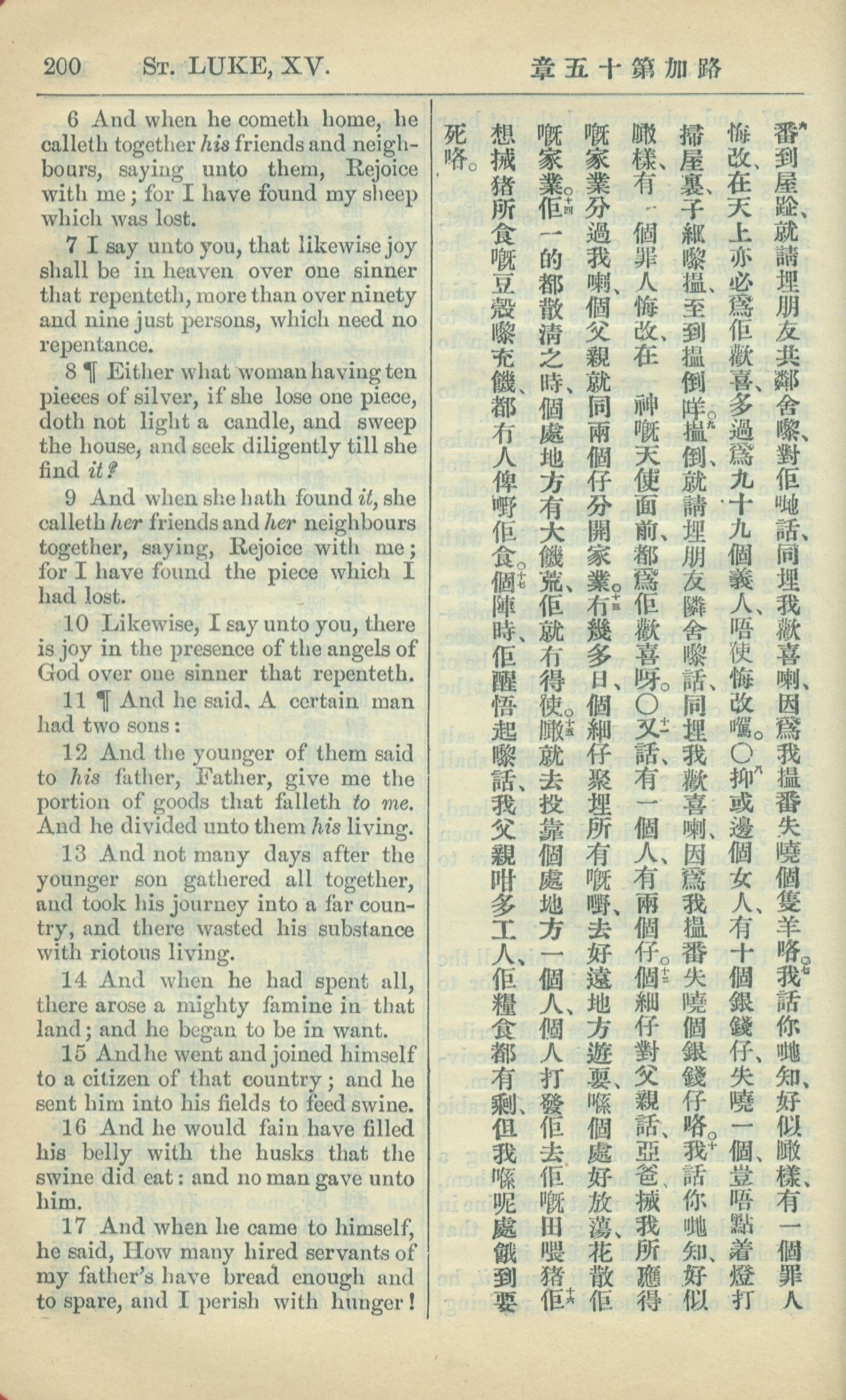 1909年中西字新約全書 路加福音 15 章 6 節到 15 章 17 節