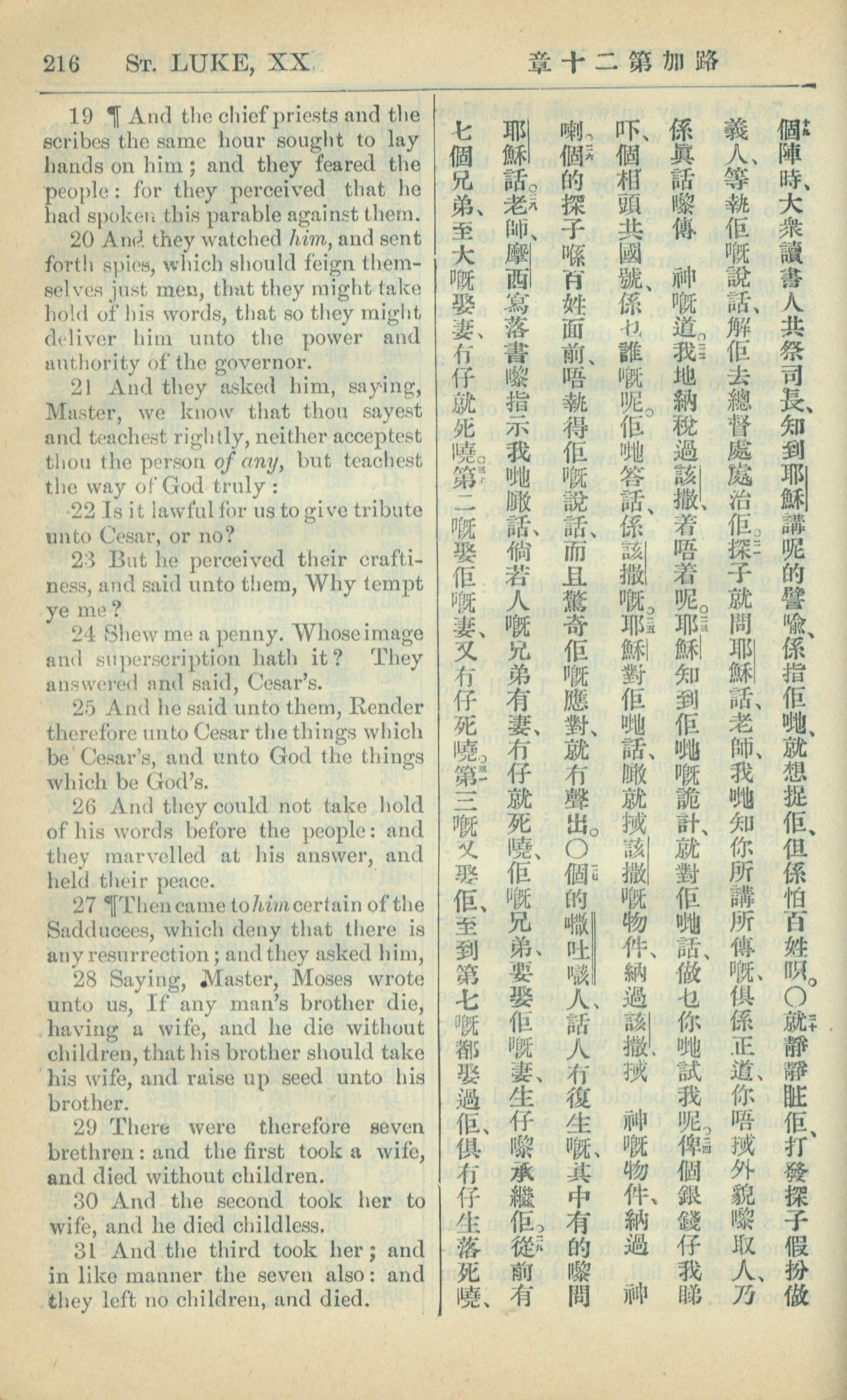 1909年中西字新約全書 路加福音 20 章 19 節到 20 章 31 節