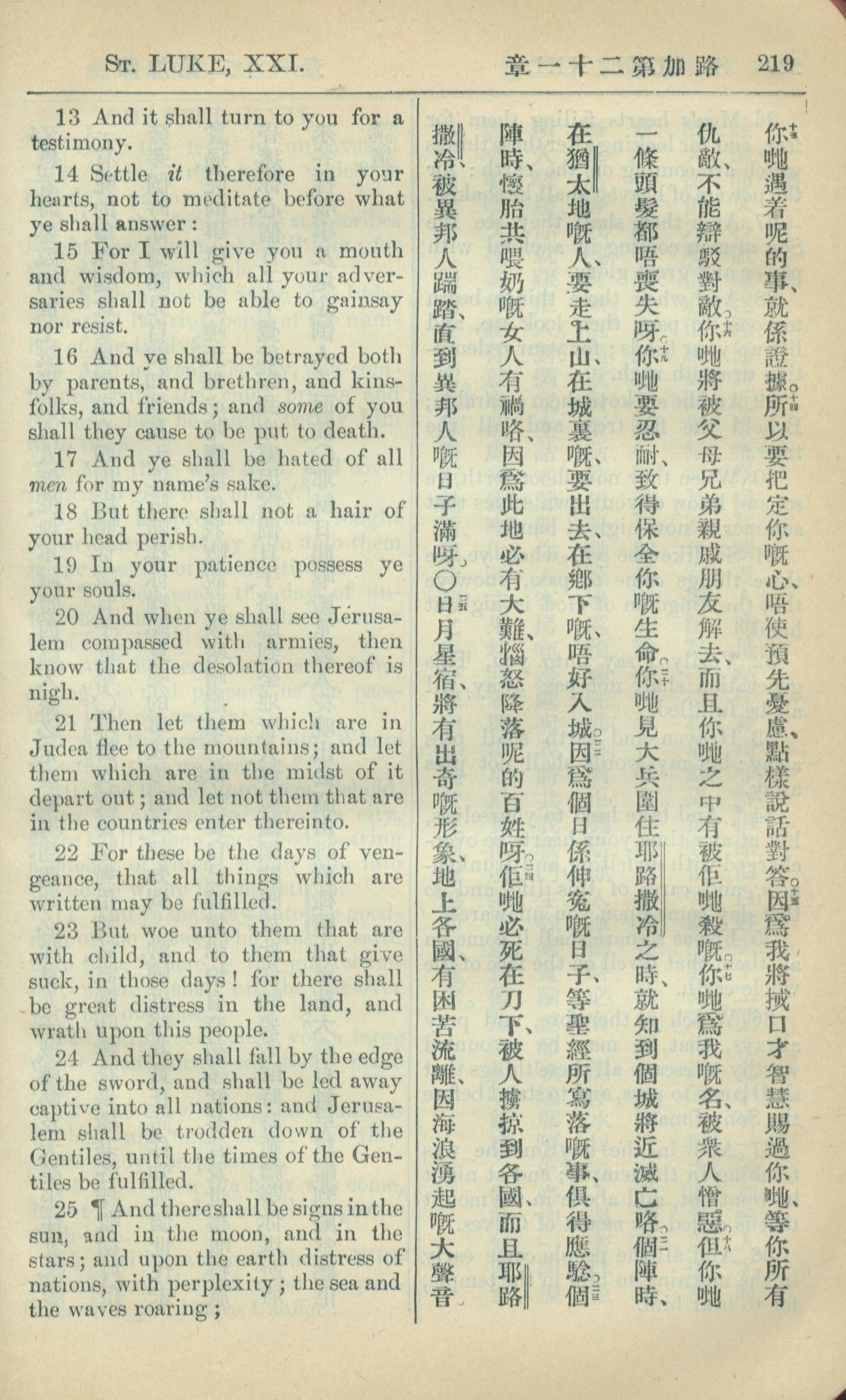 1909年中西字新約全書 路加福音 21 章 13 節到 21 章 25 節