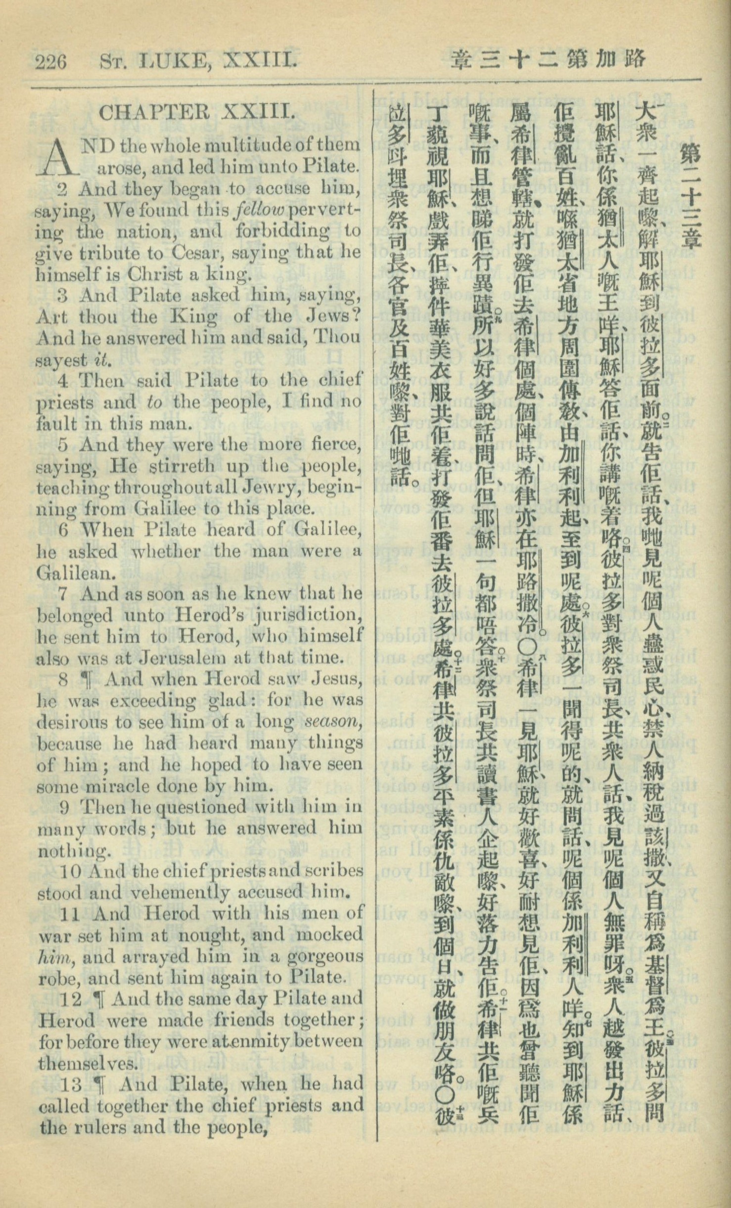 1909年中西字新約全書 路加福音 23 章 1 節到 23 章 13 節