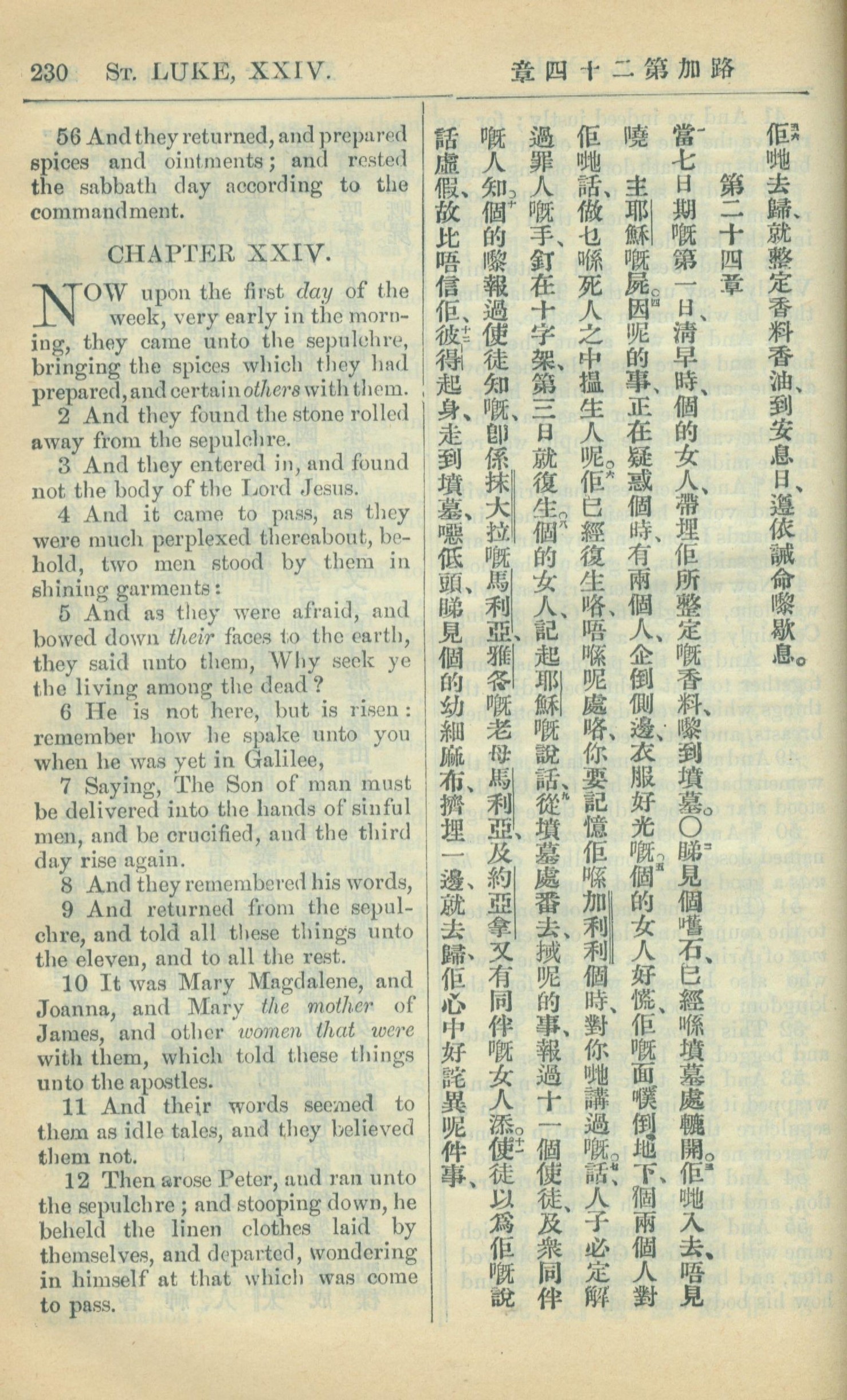 1909年中西字新約全書 路加福音 23 章 56 節到 24 章 12 節