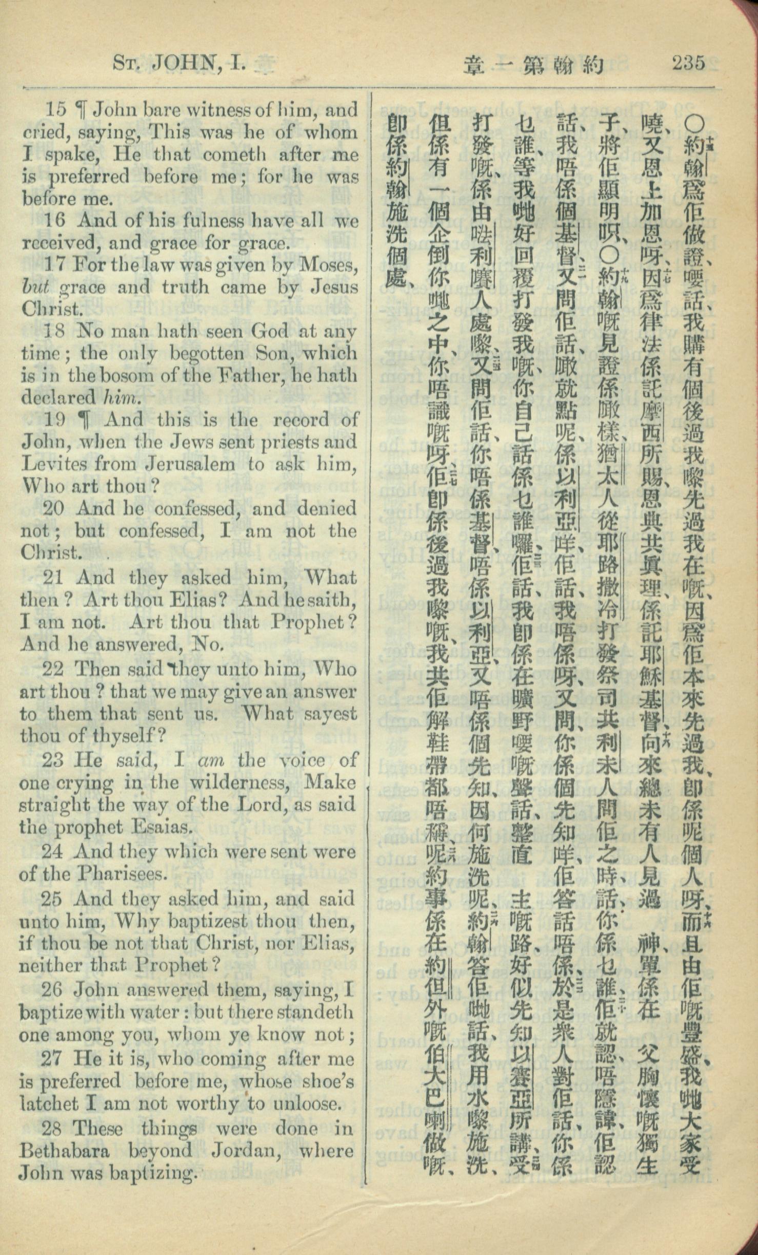 1909年中西字新約全書 約翰福音 1 章 15 節到 1 章 28 節