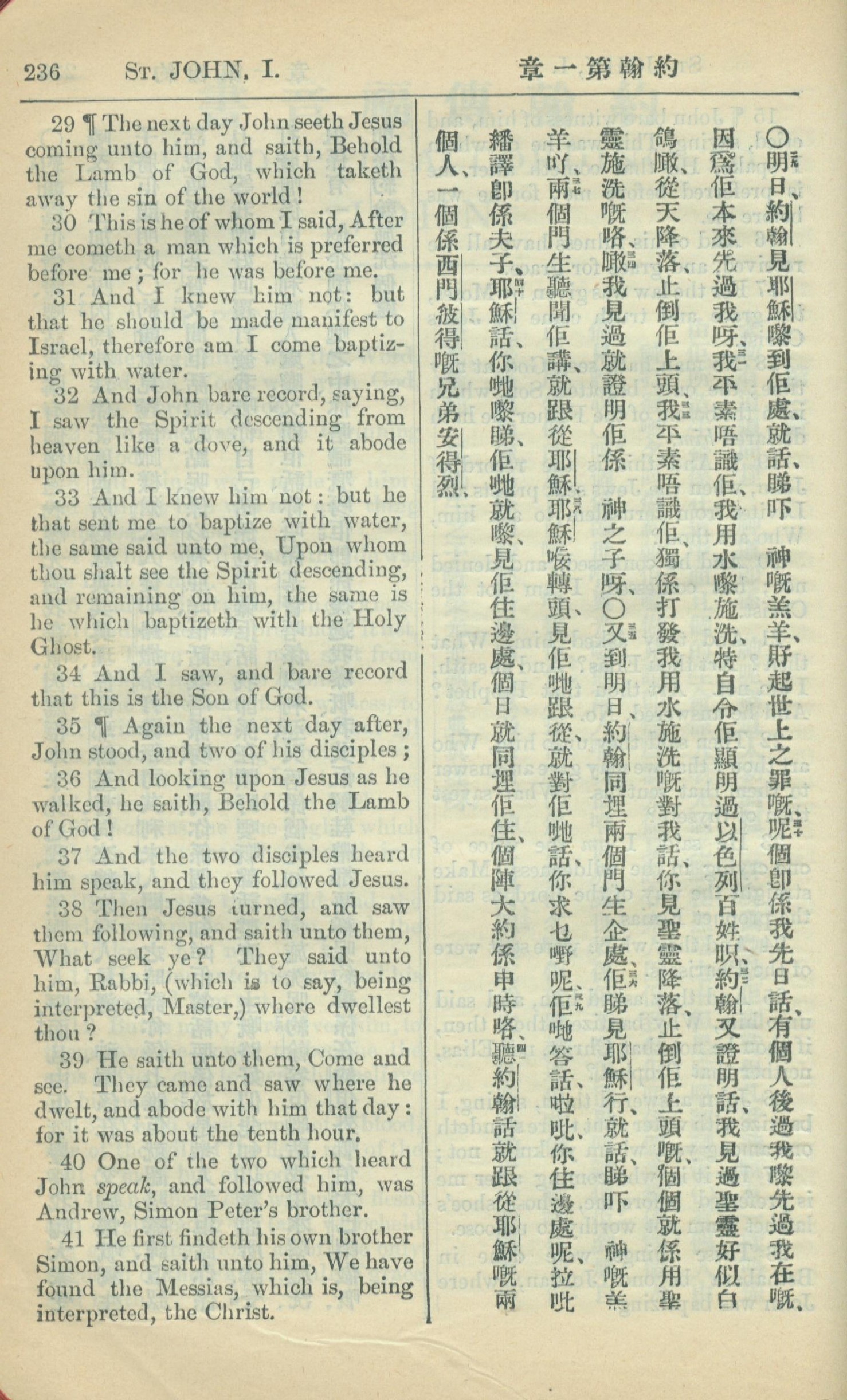 1909年中西字新約全書 約翰福音 1 章 29 節到 1 章 41 節