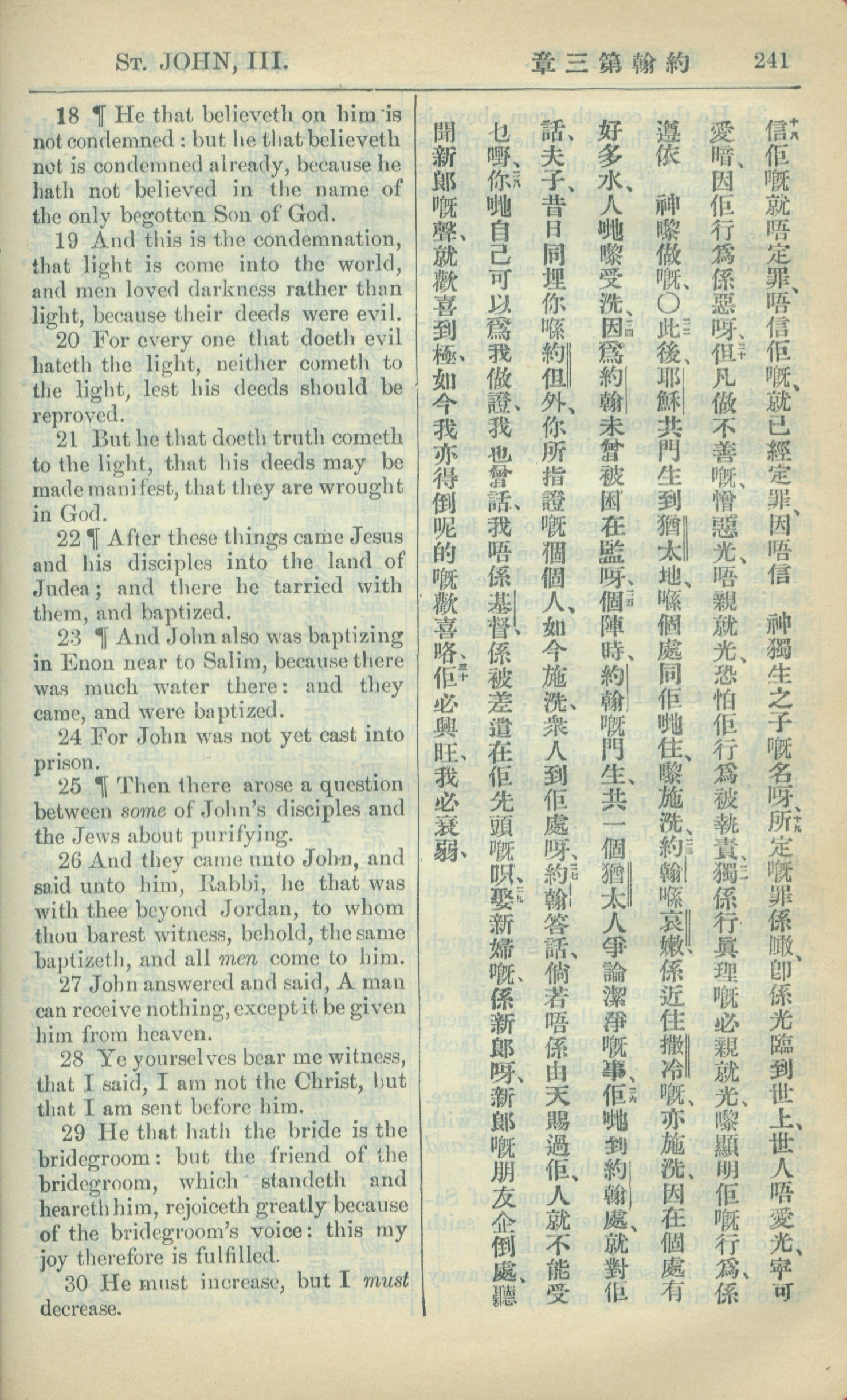 1909年中西字新約全書 約翰福音 3 章 18 節到 3 章 30 節