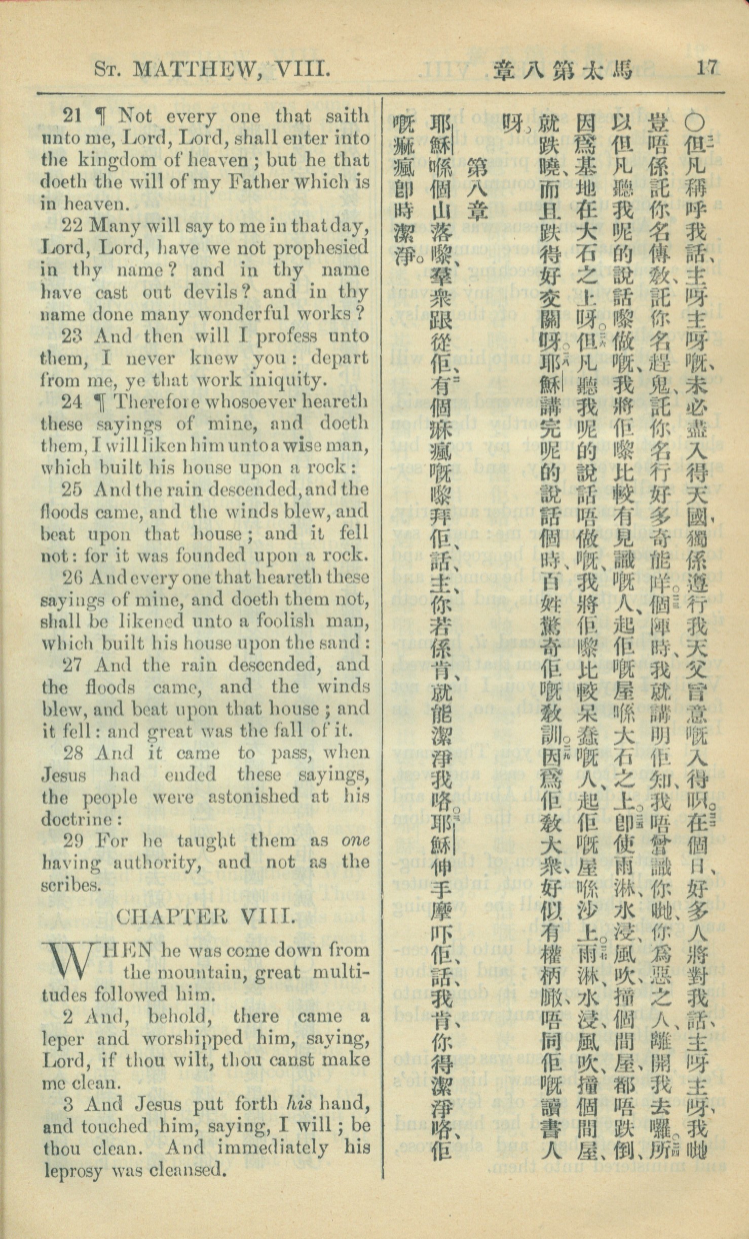 1909年中西字新約全書 馬太福音 7 章 21 節到 8 章 3 節