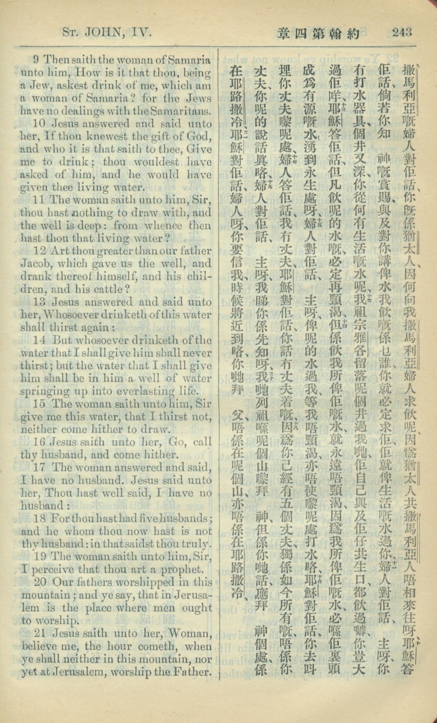 1909年中西字新約全書 約翰福音 4 章 9 節到 4 章 21 節