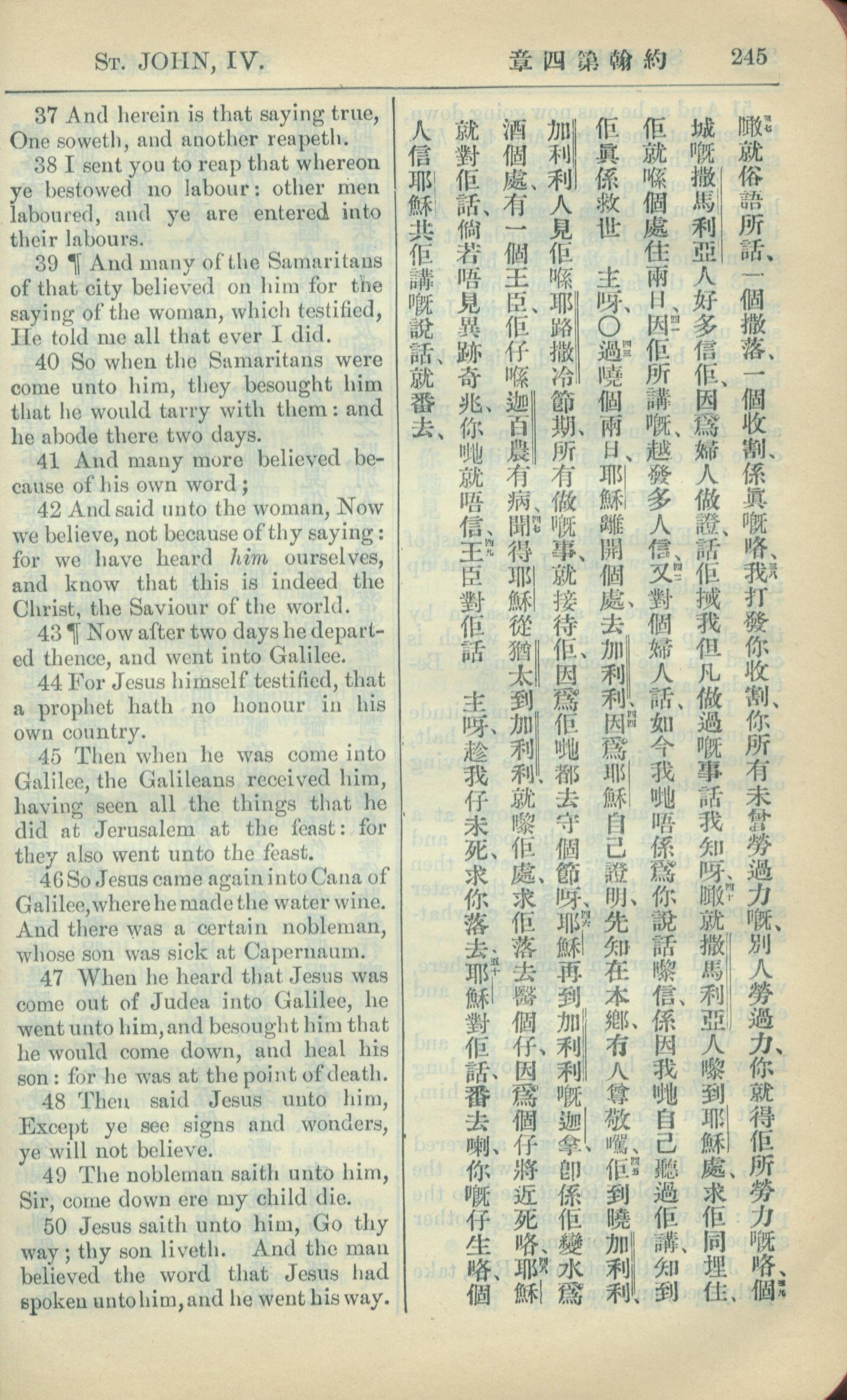 1909年中西字新約全書 約翰福音 4 章 37 節到 4 章 50 節