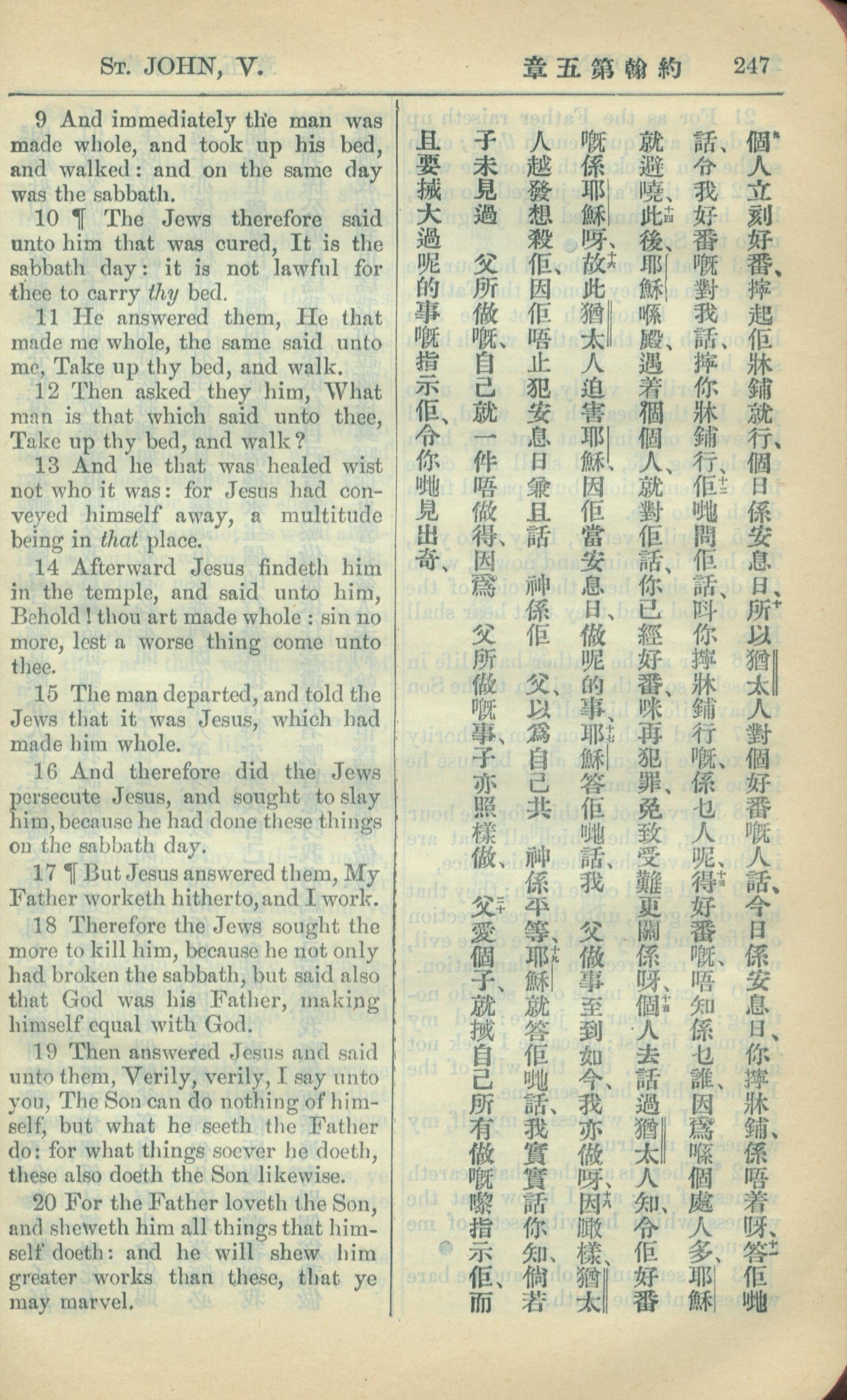 1909年中西字新約全書 約翰福音 5 章 9 節到 5 章 20 節