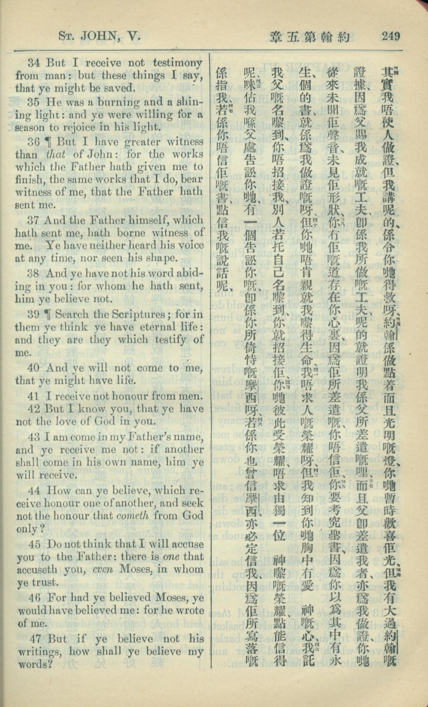 1909年中西字新約全書 約翰福音 5 章 34 節到 5 章 47 節