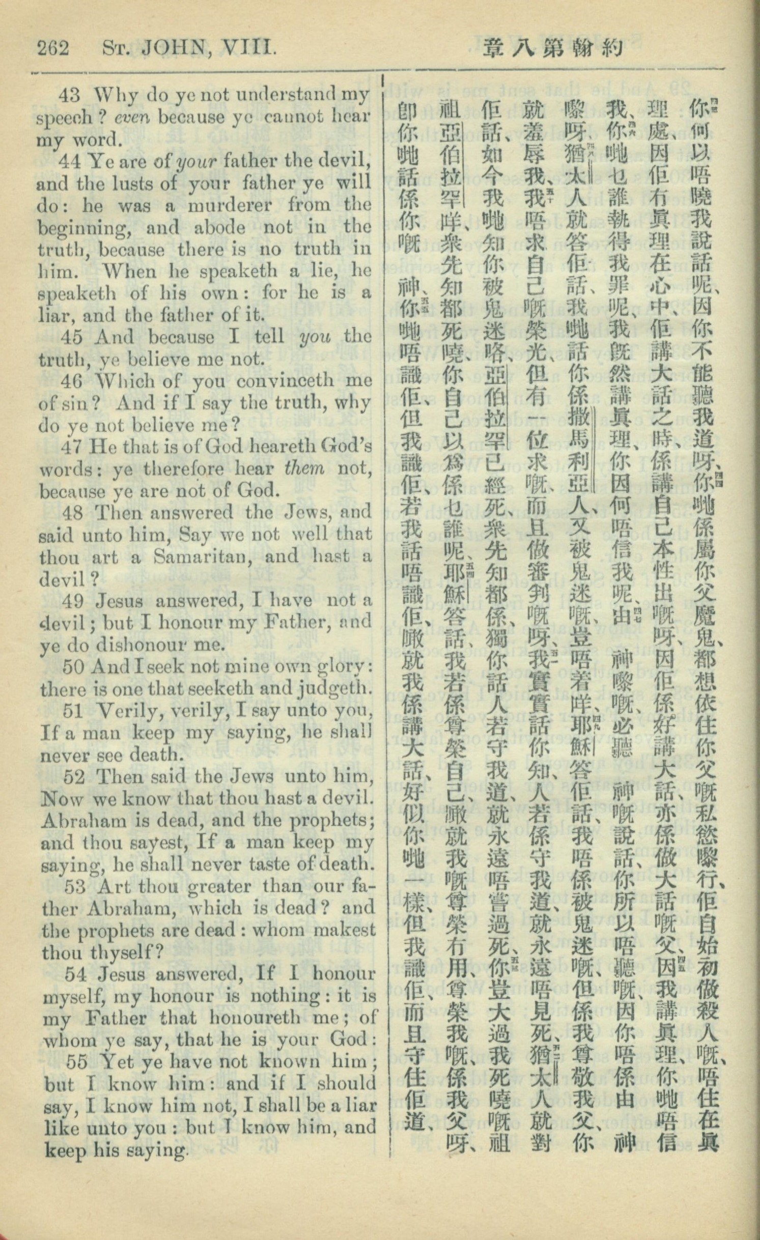 1909年中西字新約全書 約翰福音 8 章 43 節到 8 章 55 節