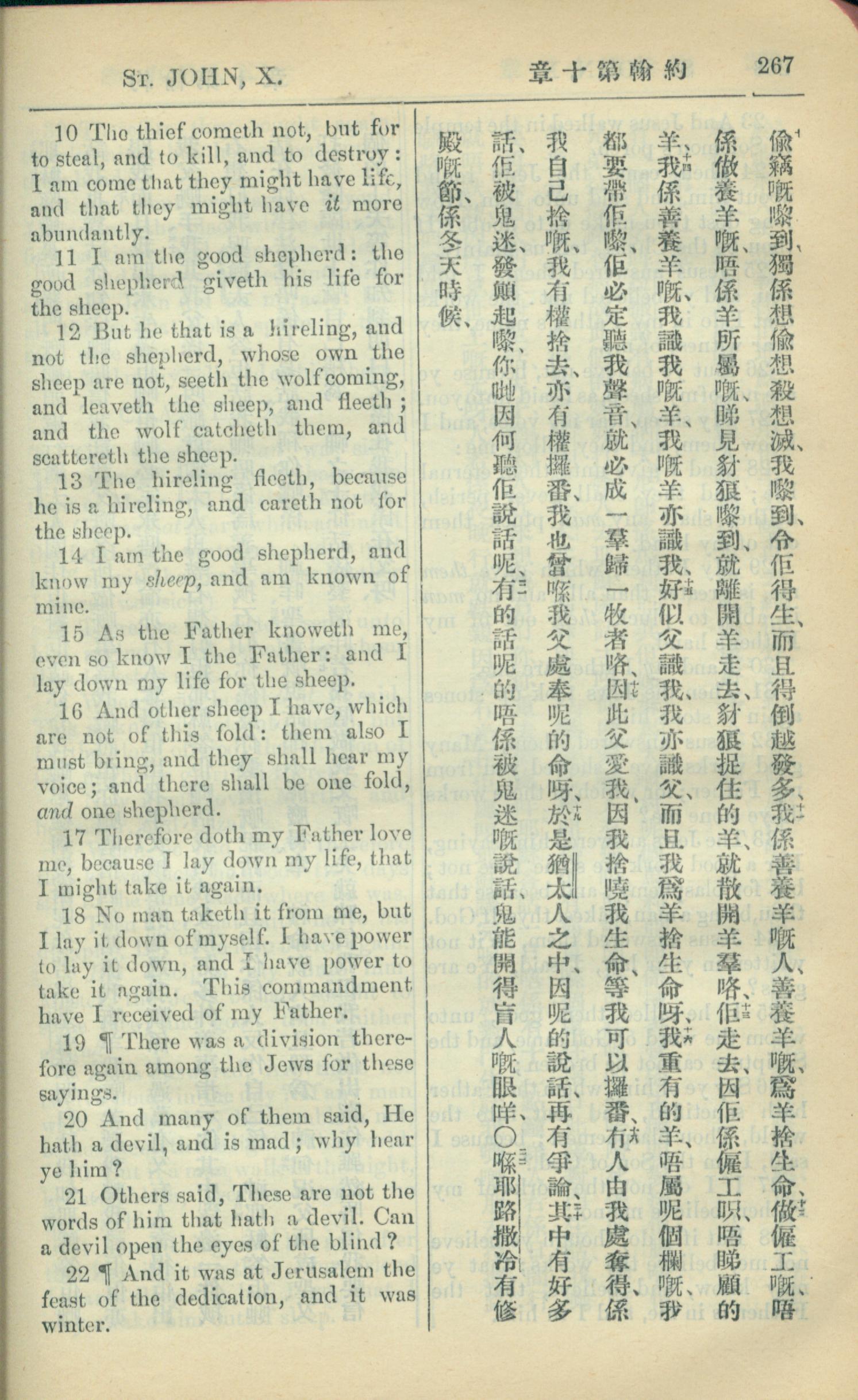 1909年中西字新約全書 約翰福音 10 章 10 節到 10 章 22 節