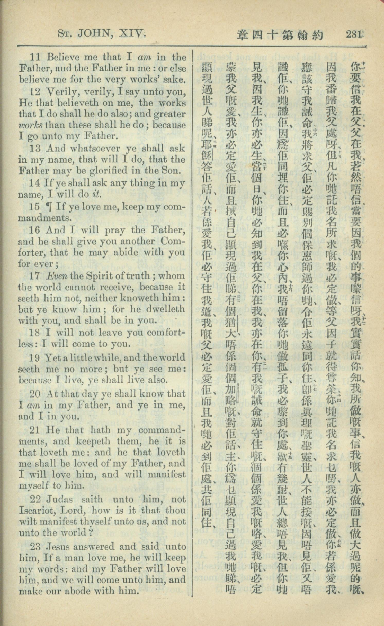 1909年中西字新約全書 約翰福音 14 章 11 節到 14 章 23 節