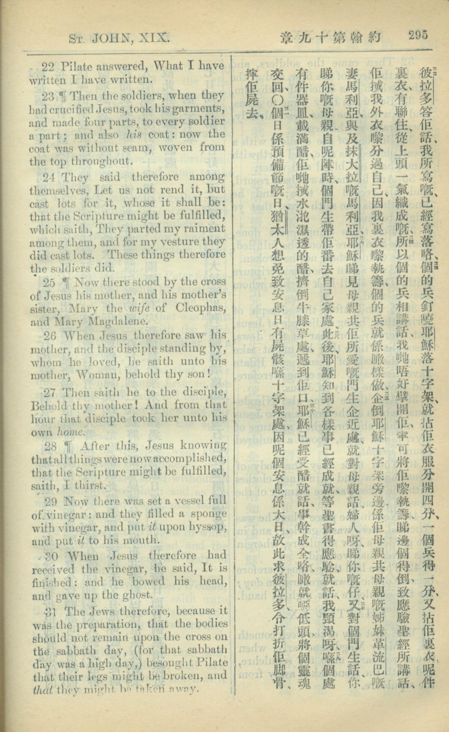 1909年中西字新約全書 約翰福音 19 章 22 節到 19 章 31 節