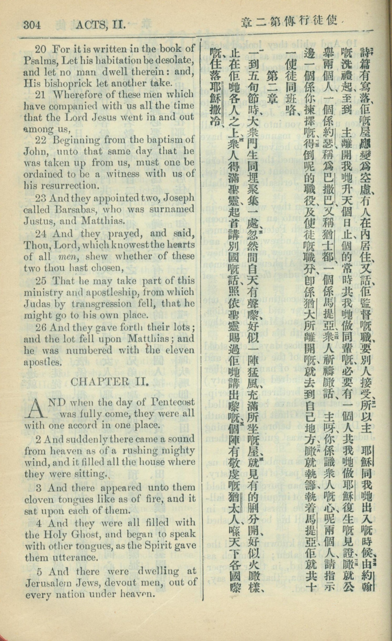 1909年中西字新約全書 使徒行傳 1 章 20 節到 2 章 5 節