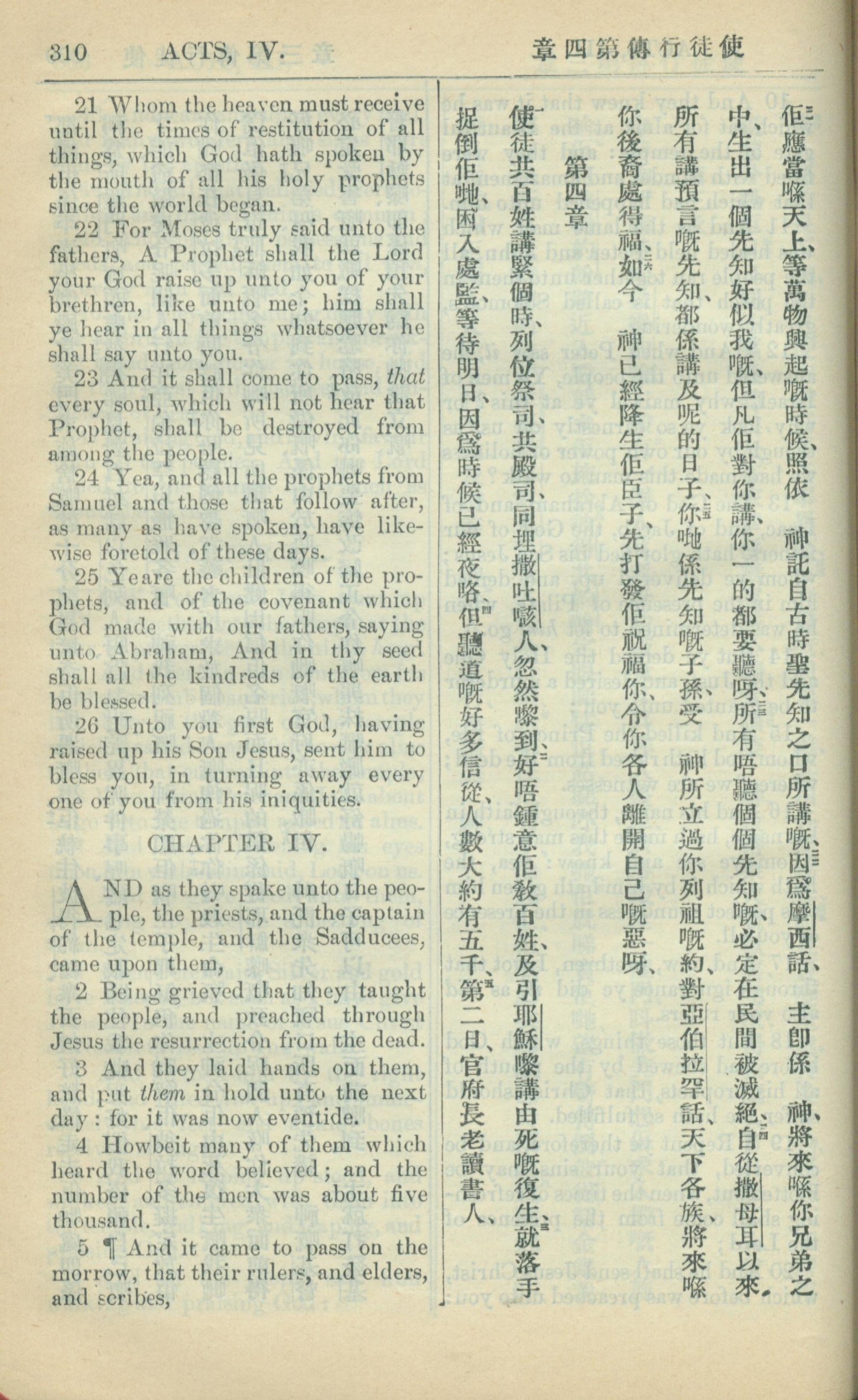1909年中西字新約全書 使徒行傳 3 章 21 節到 4 章 5 節