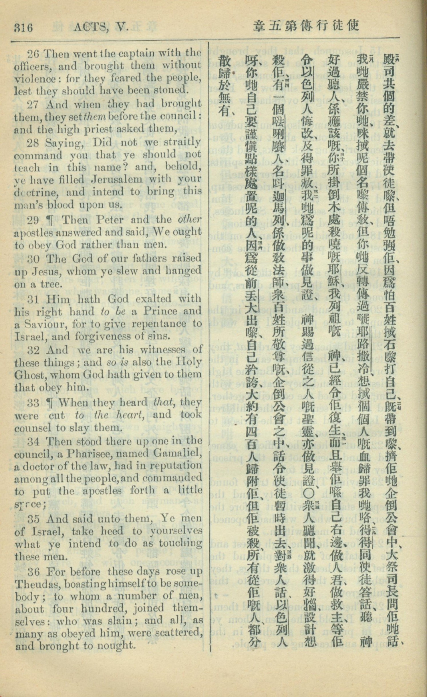 1909年中西字新約全書 使徒行傳 5 章 26 節到 5 章 36 節