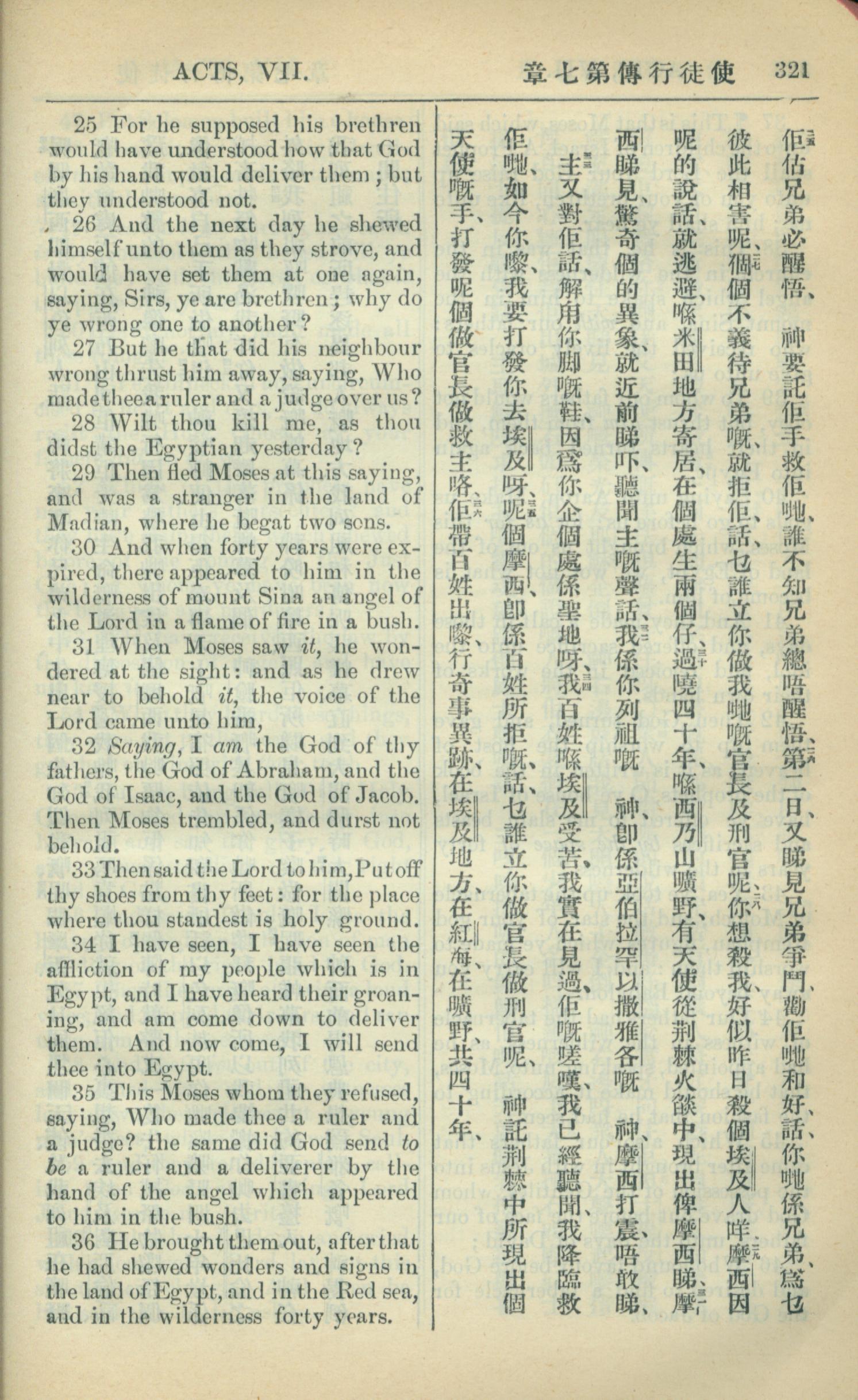 1909年中西字新約全書 使徒行傳 7 章 25 節到 7 章 36 節