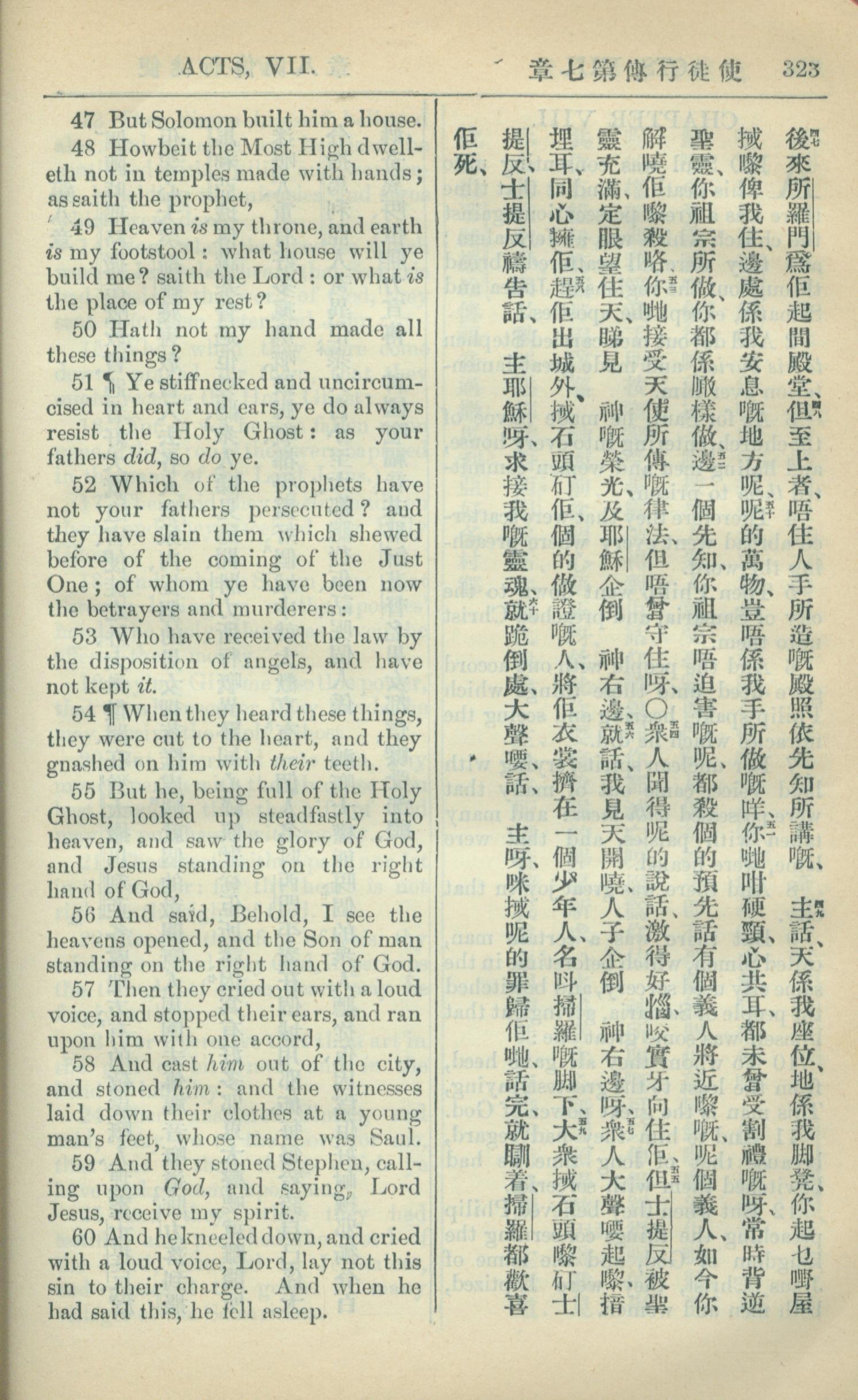 1909年中西字新約全書 使徒行傳 7 章 47 節到 7 章 60 節