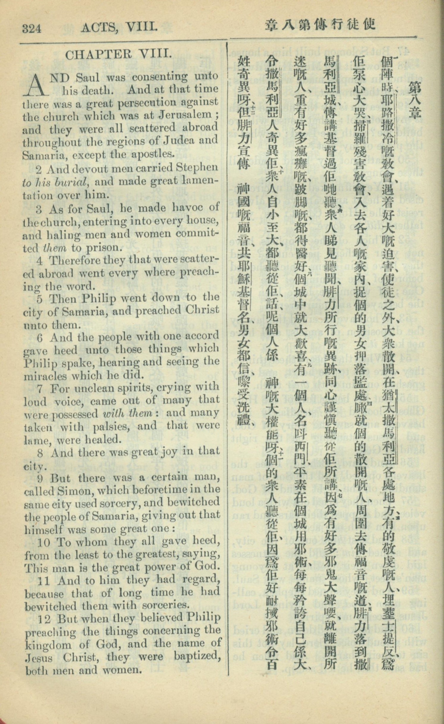 1909年中西字新約全書 使徒行傳 8 章 1 節到 8 章 12 節