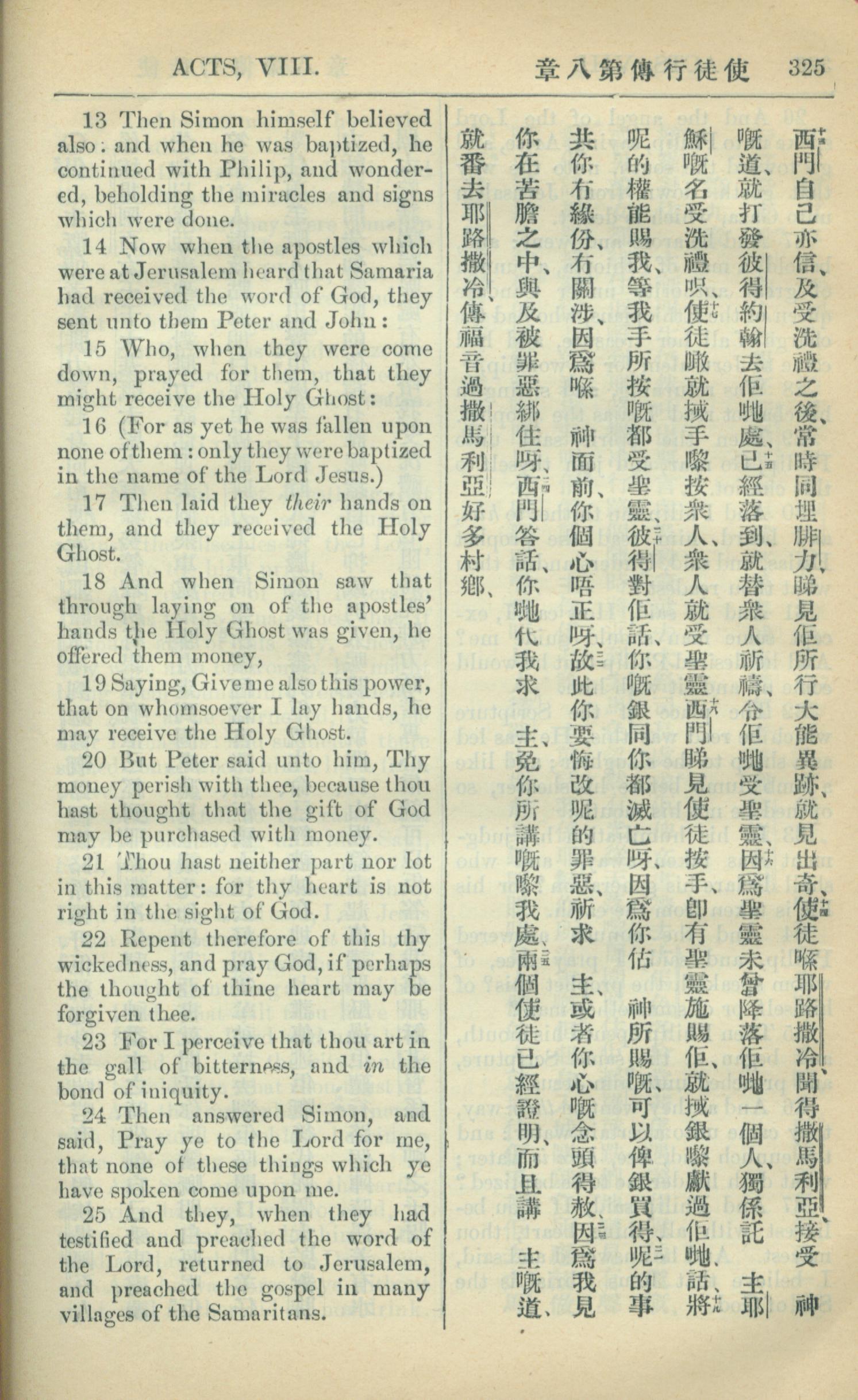 1909年中西字新約全書 使徒行傳 8 章 13 節到 8 章 25 節