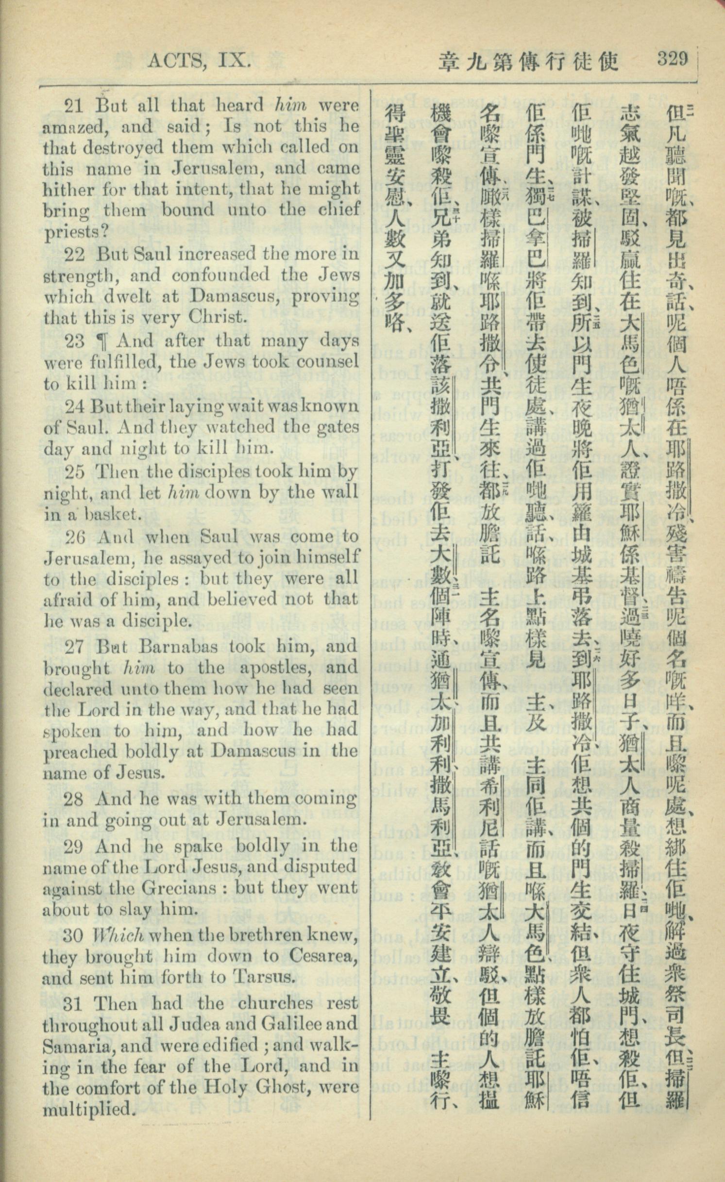1909年中西字新約全書 使徒行傳 9 章 21 節到 9 章 31 節