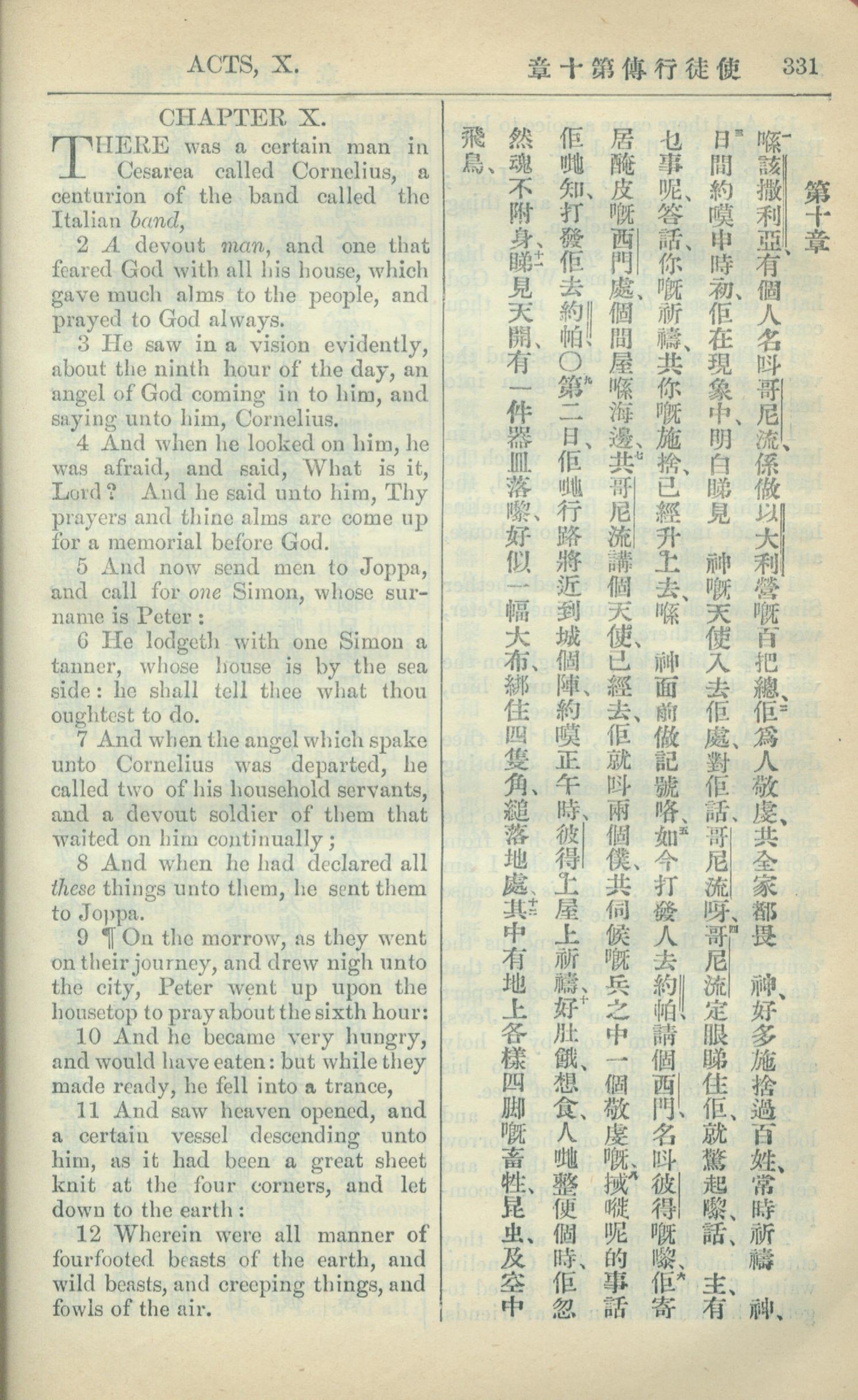 1909年中西字新約全書 使徒行傳 10 章 1 節到 10 章 12 節