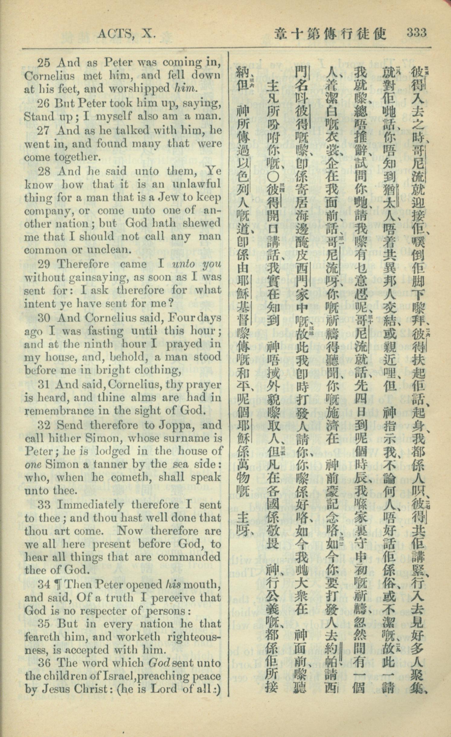 1909年中西字新約全書 使徒行傳 10 章 25 節到 10 章 36 節