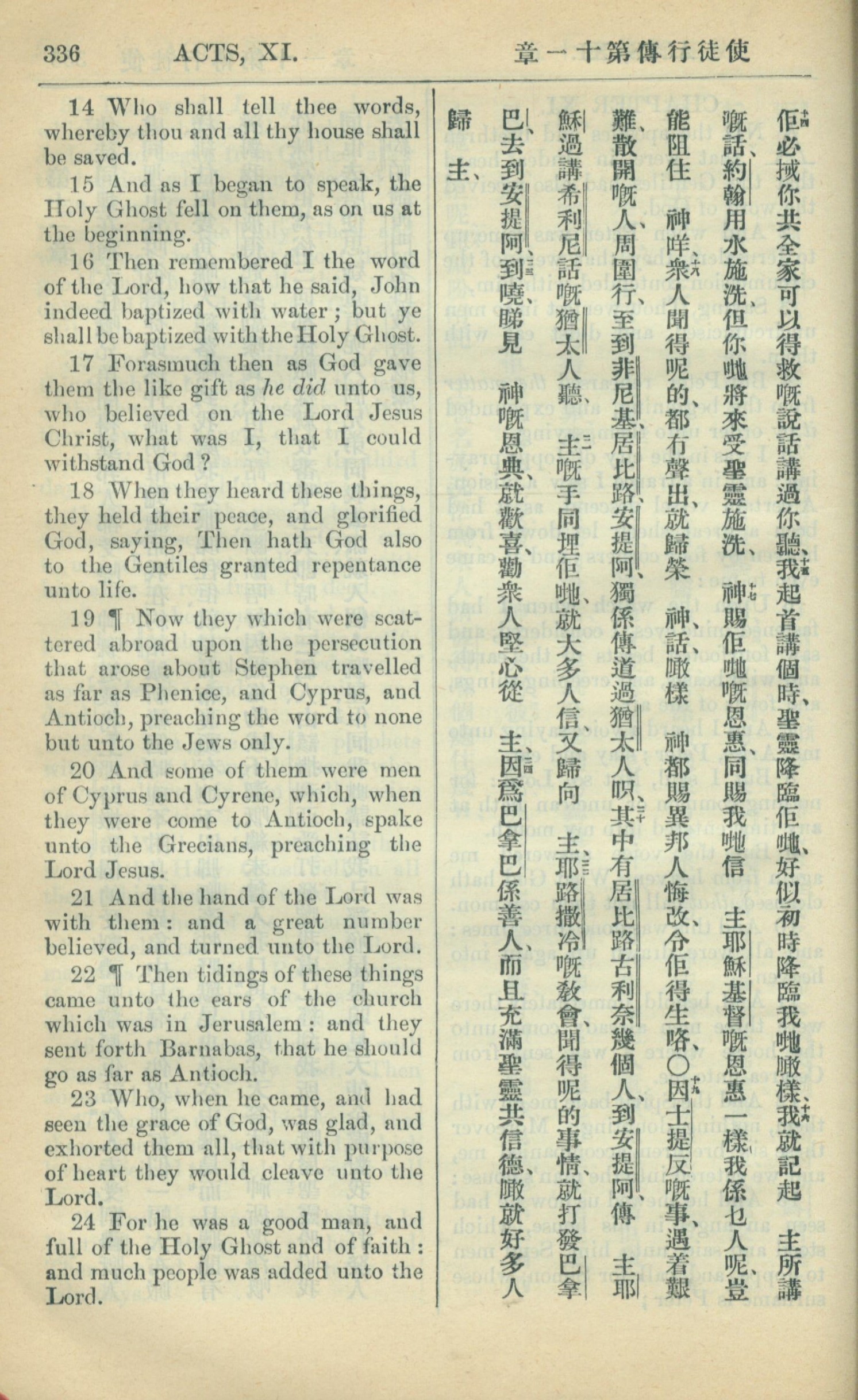 1909年中西字新約全書 使徒行傳 11 章 14 節到 11 章 24 節