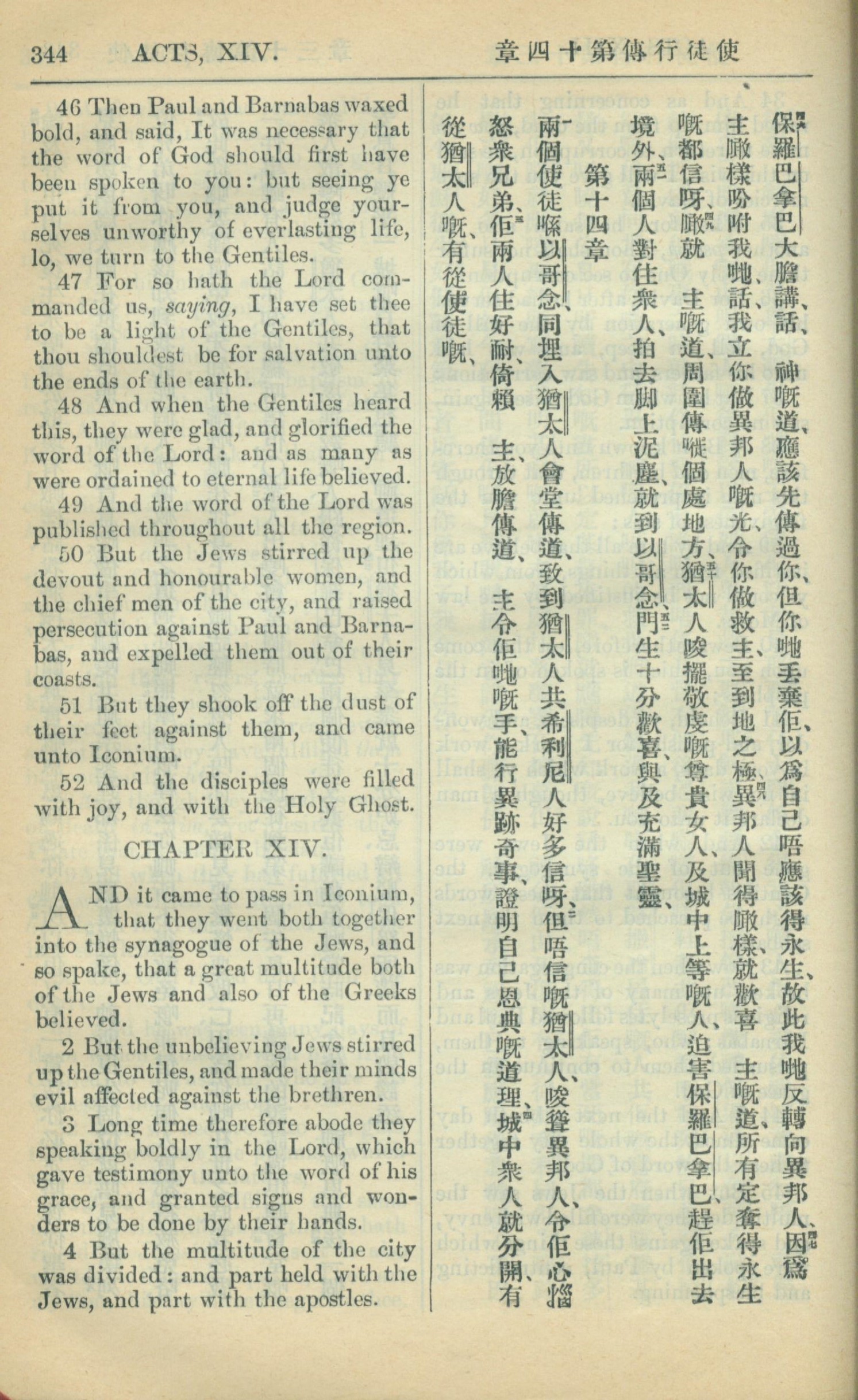 1909年中西字新約全書 使徒行傳 13 章 46 節到 14 章 4 節