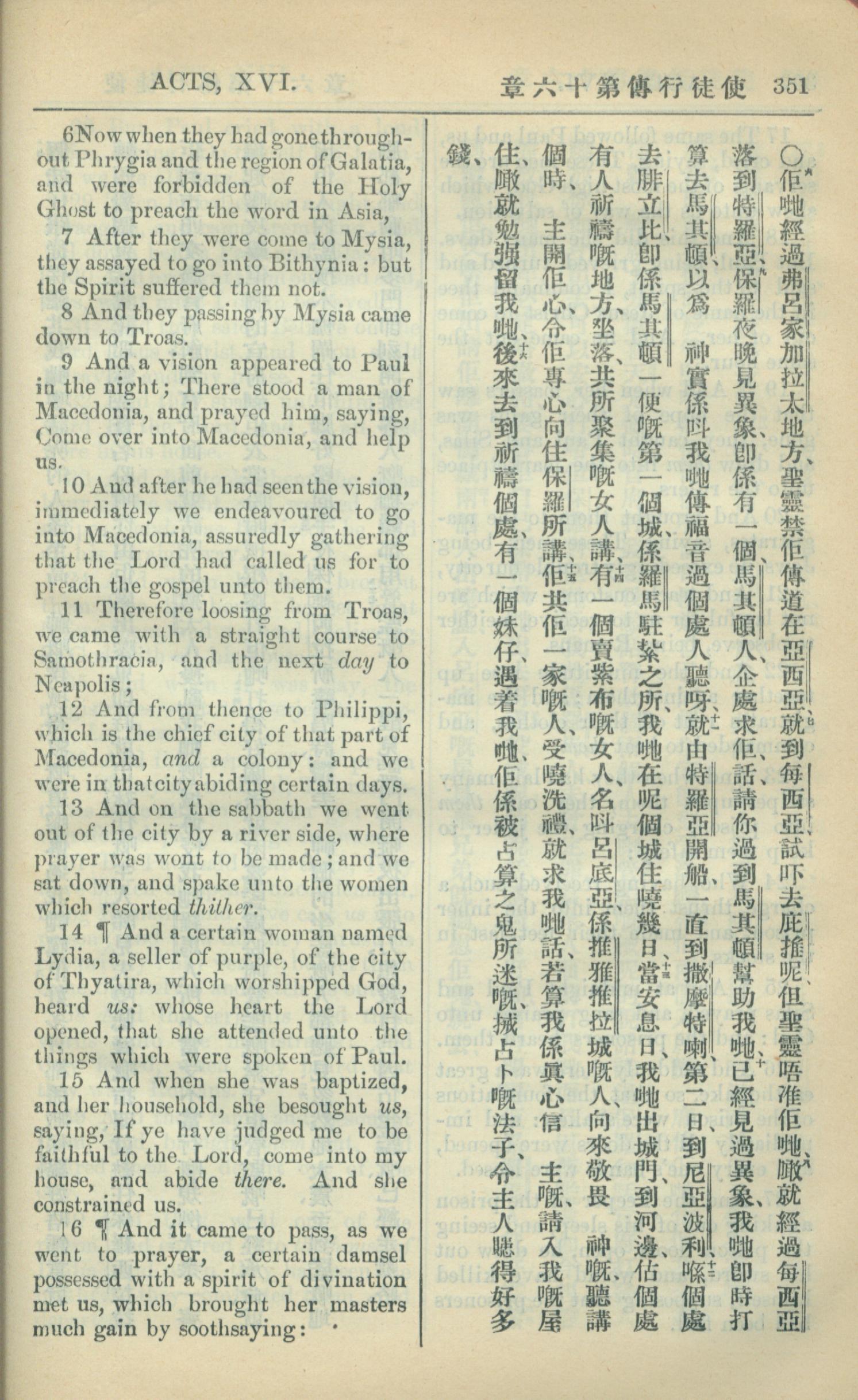1909年中西字新約全書 使徒行傳 16 章 6 節到 16 章 16 節