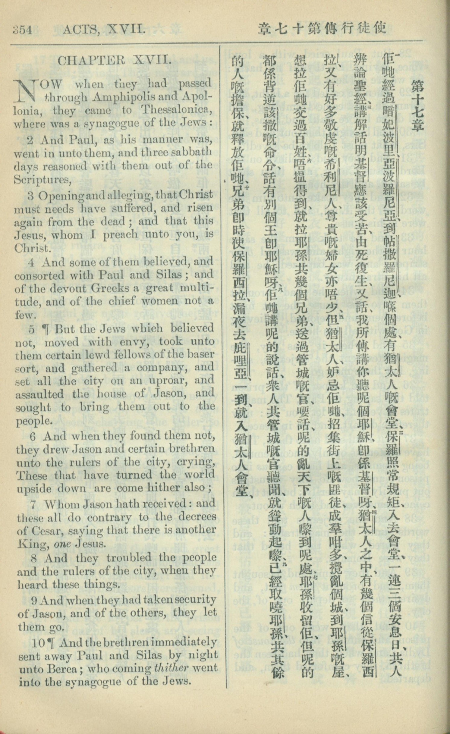 1909年中西字新約全書 使徒行傳 17 章 1 節到 17 章 10 節
