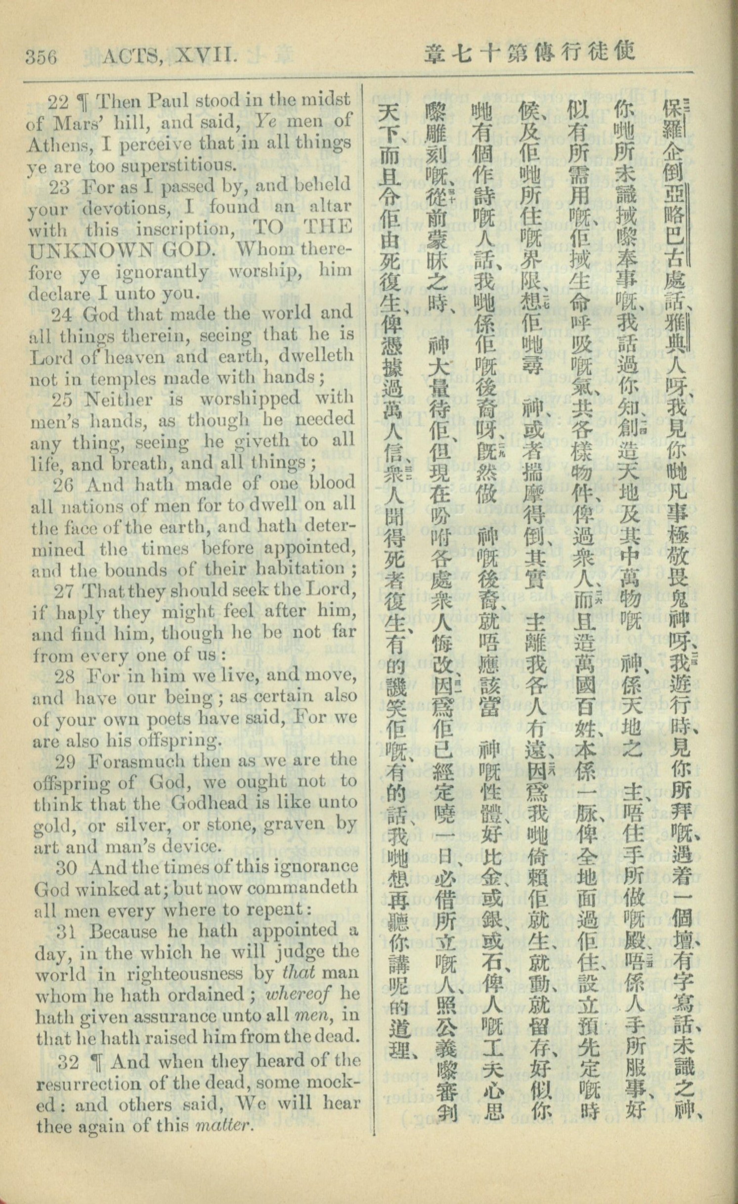 1909年中西字新約全書 使徒行傳 17 章 22 節到 17 章 32 節