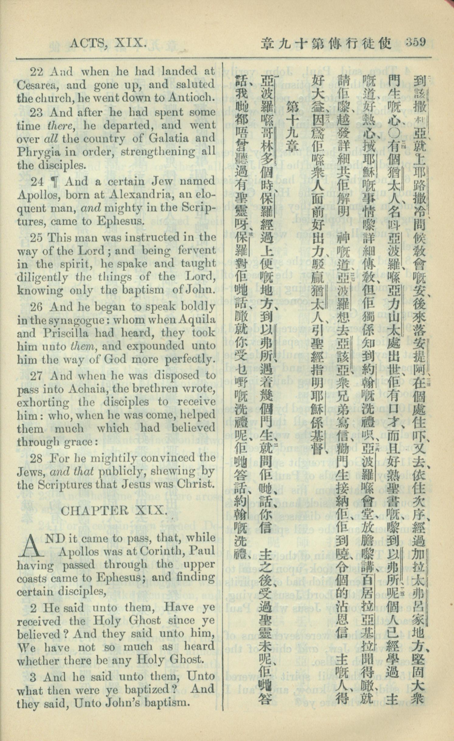 1909年中西字新約全書 使徒行傳 18 章 22 節到 19 章 3 節