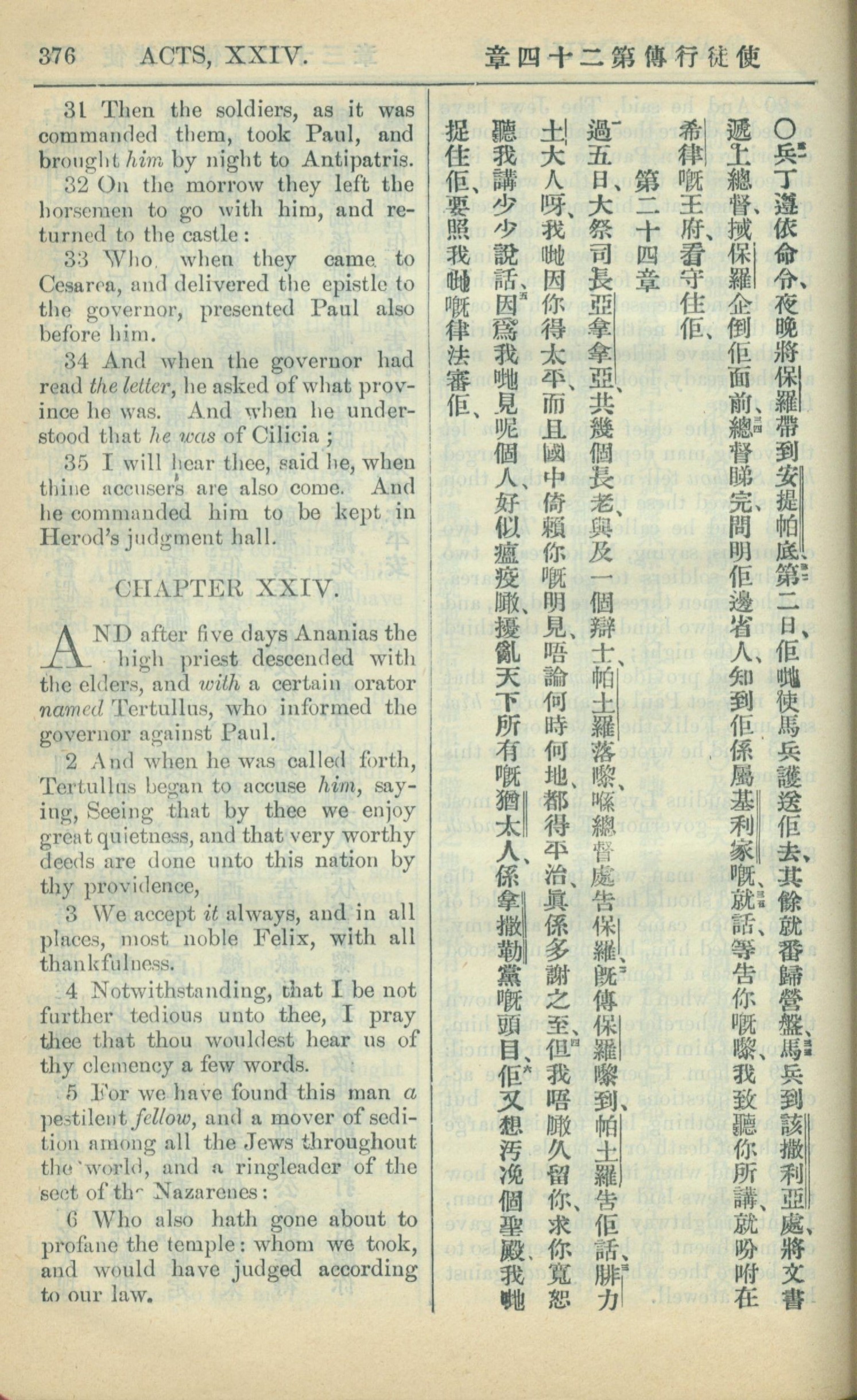 1909年中西字新約全書 使徒行傳 23 章 31 節到 24 章 6 節