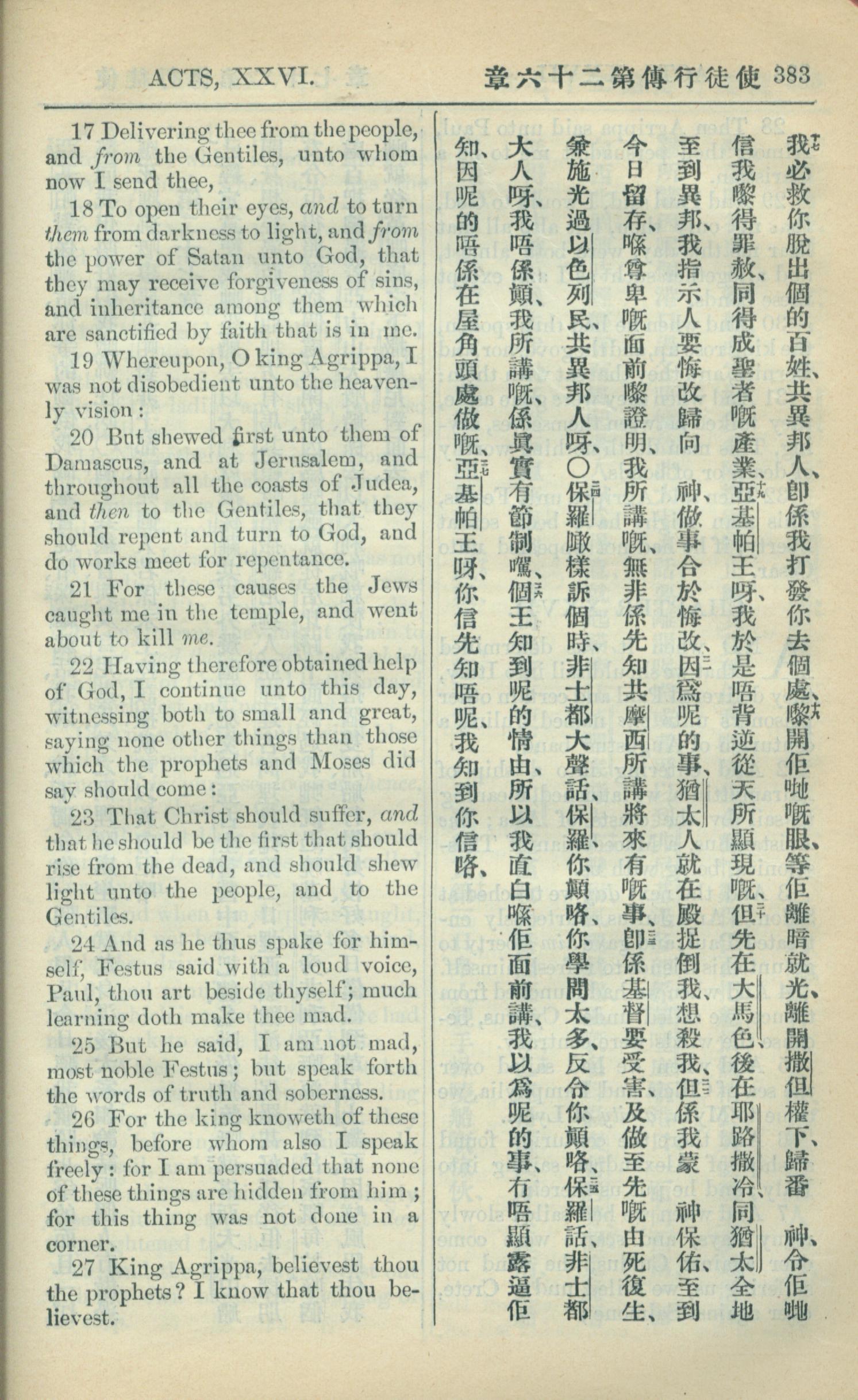 1909年中西字新約全書 使徒行傳 26 章 17 節到 26 章 27 節