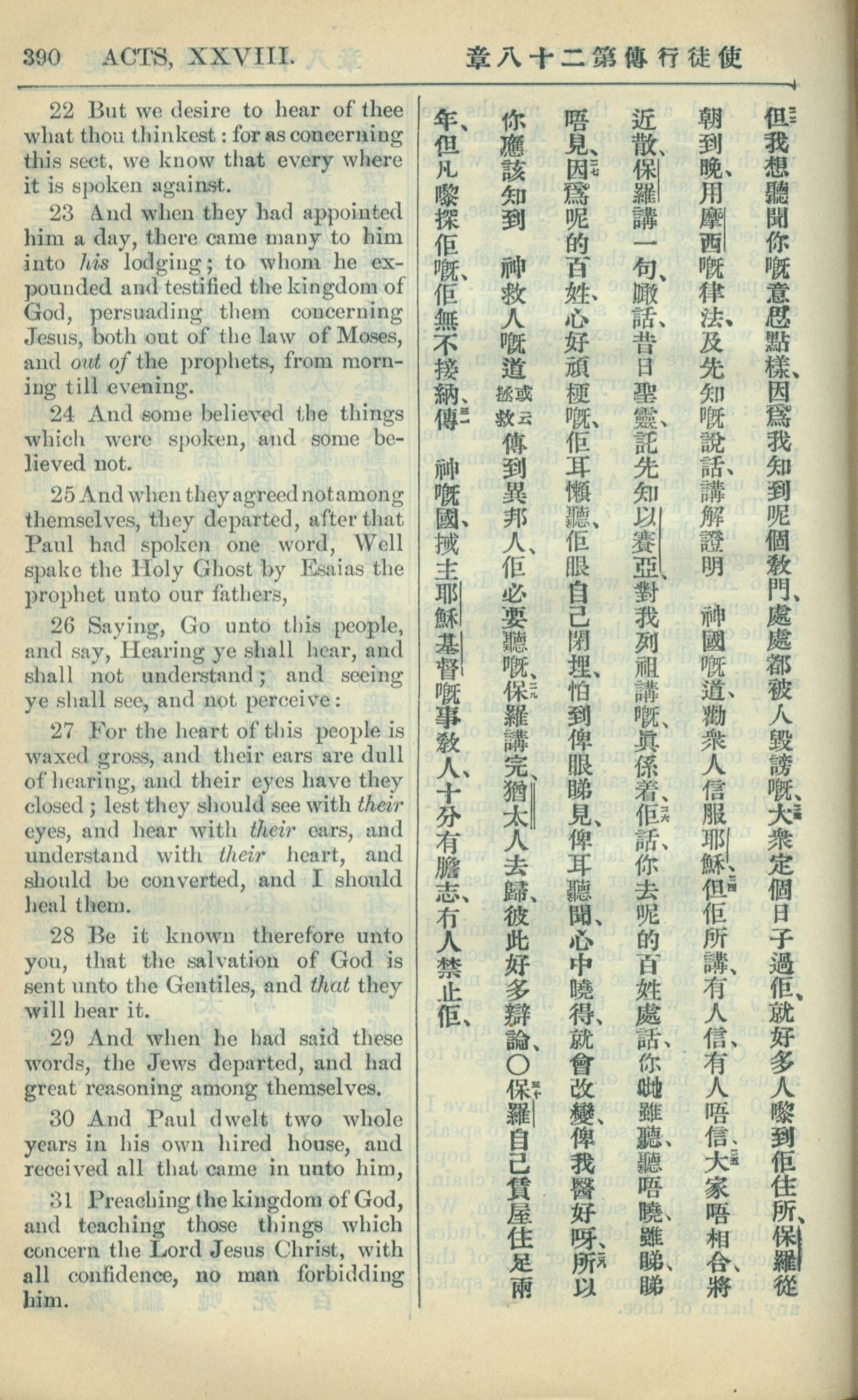 1909年中西字新約全書 使徒行傳 28 章 22 節到 28 章 31 節