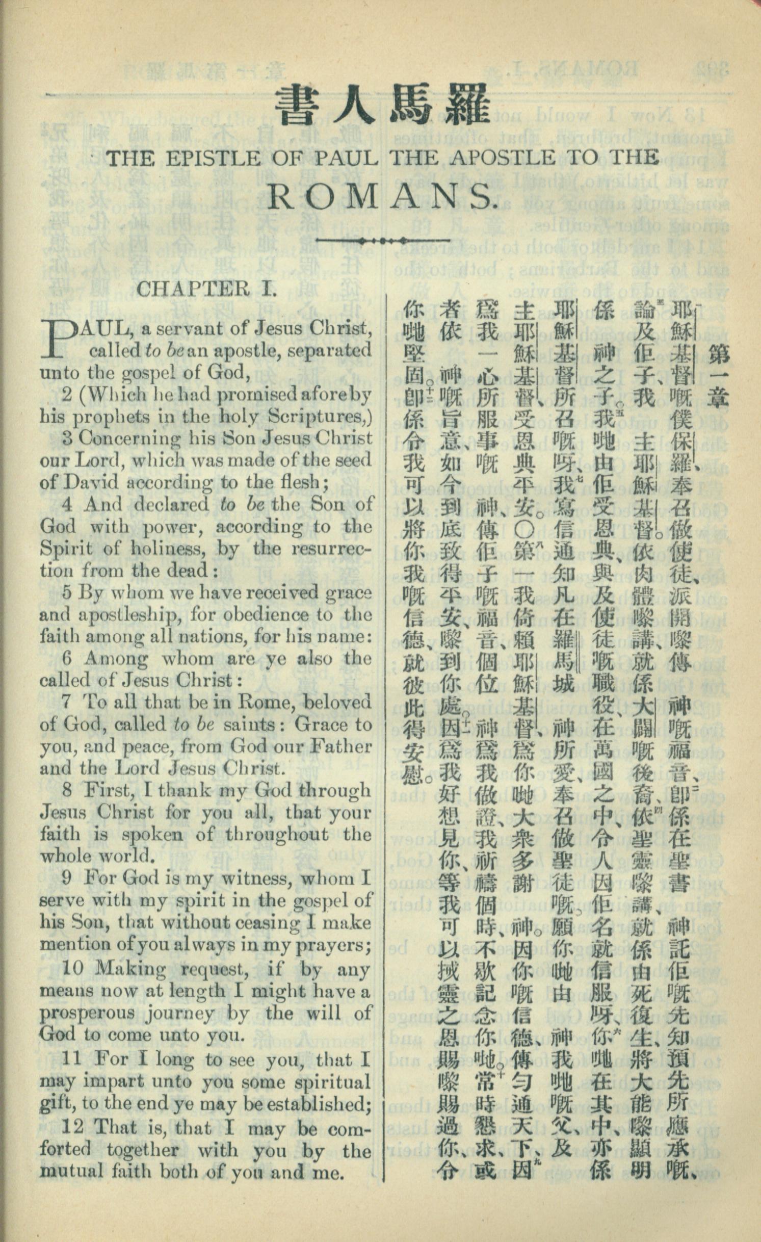 1909年中西字新約全書 羅馬書 1 章 1 節到 1 章 12 節