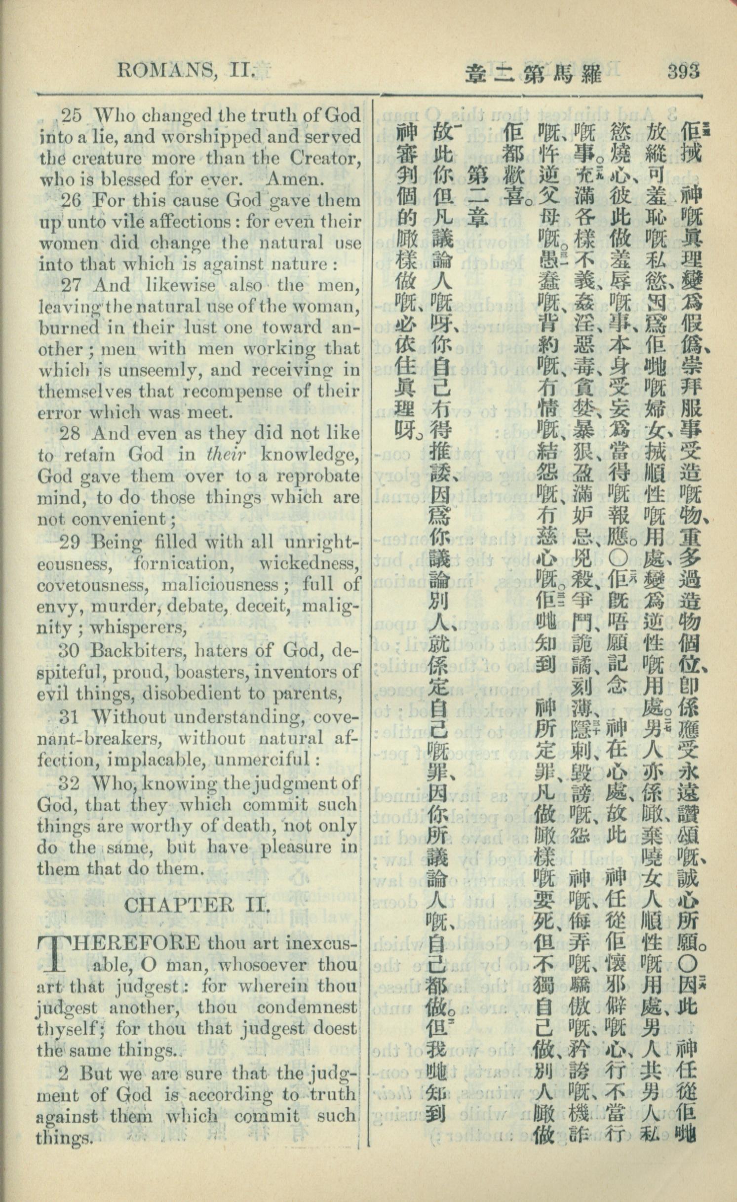 1909年中西字新約全書 羅馬書 1 章 25 節到 2 章 2 節