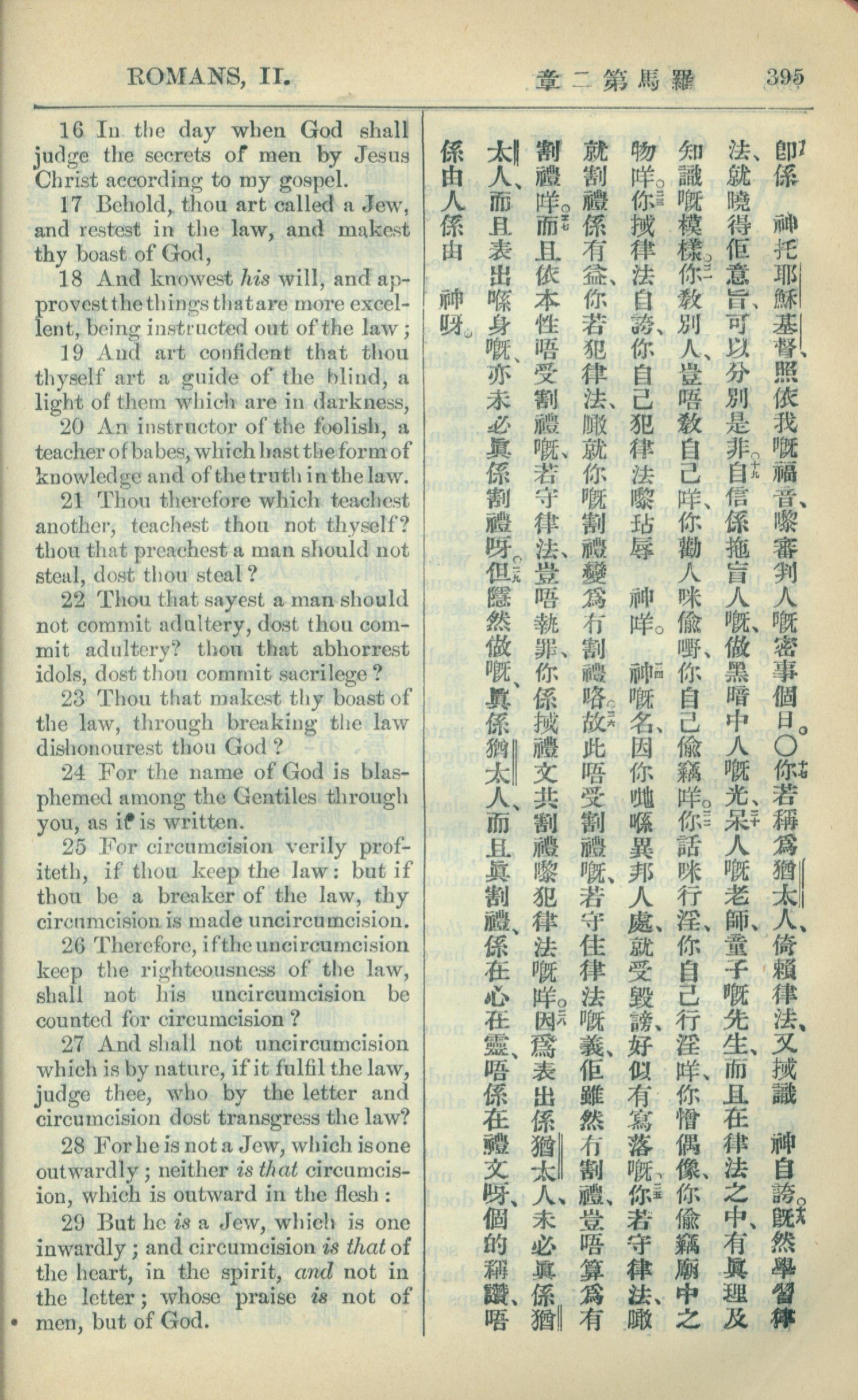 1909年中西字新約全書 羅馬書 2 章 16 節到 2 章 29 節