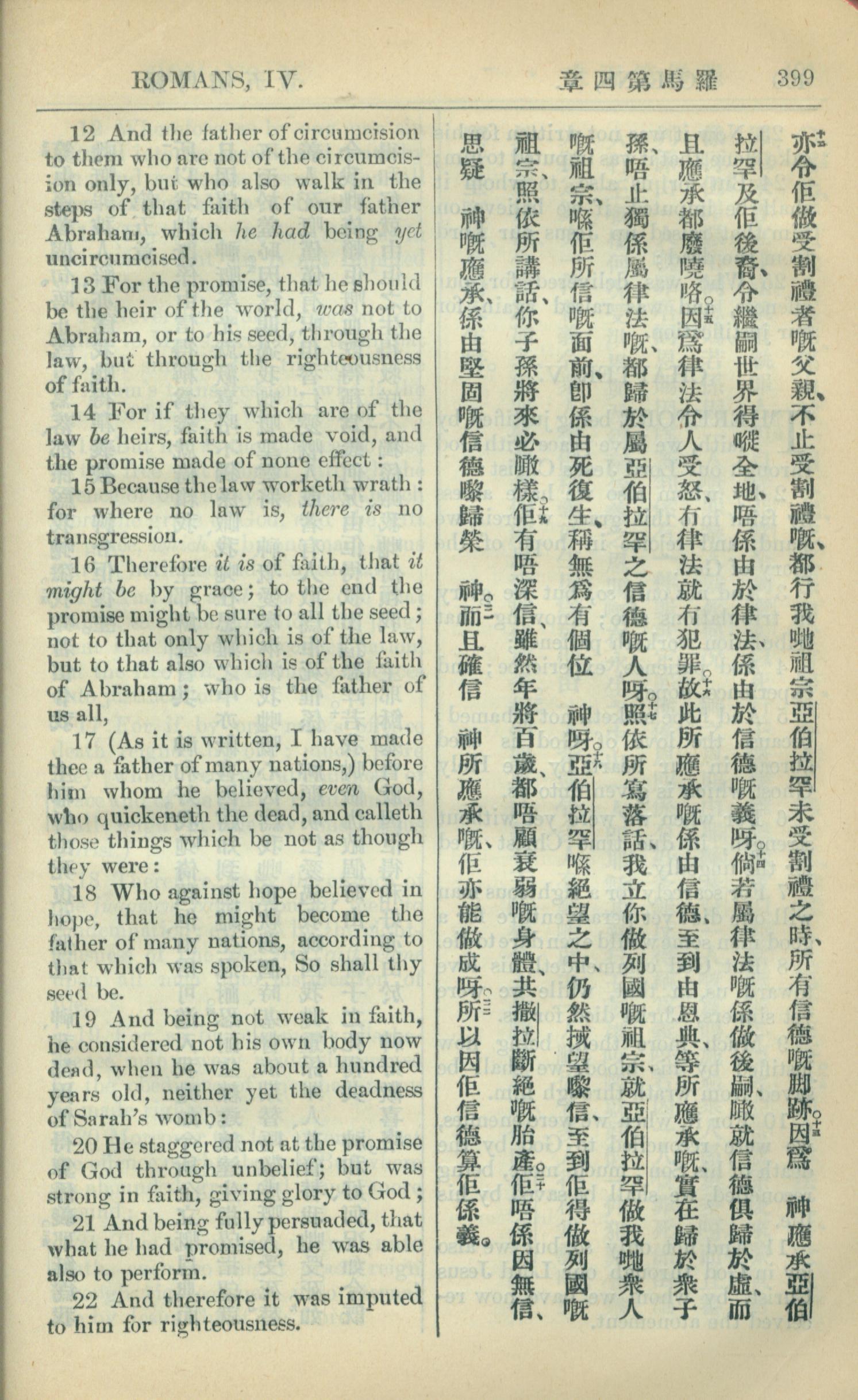 1909年中西字新約全書 羅馬書 4 章 12 節到 4 章 22 節
