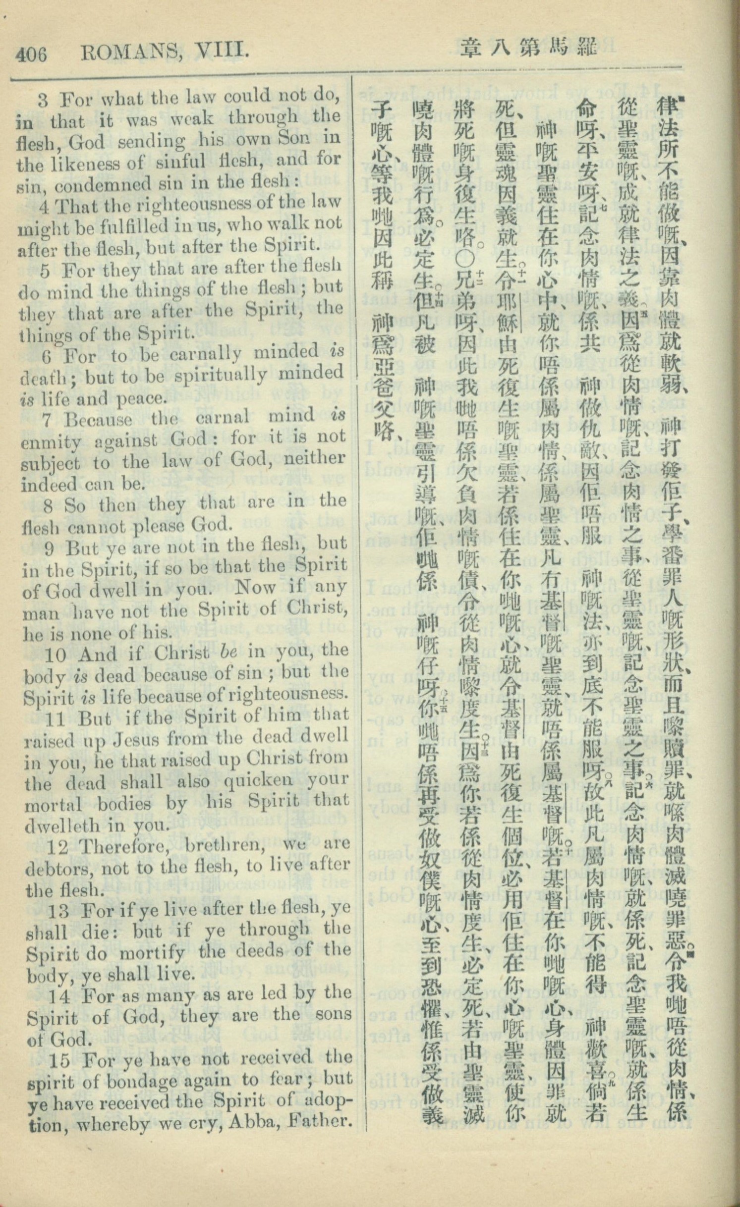 1909年中西字新約全書 羅馬書 8 章 3 節到 8 章 15 節